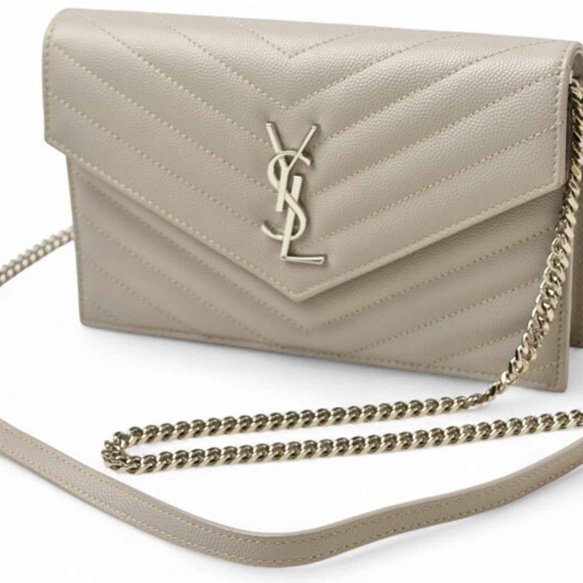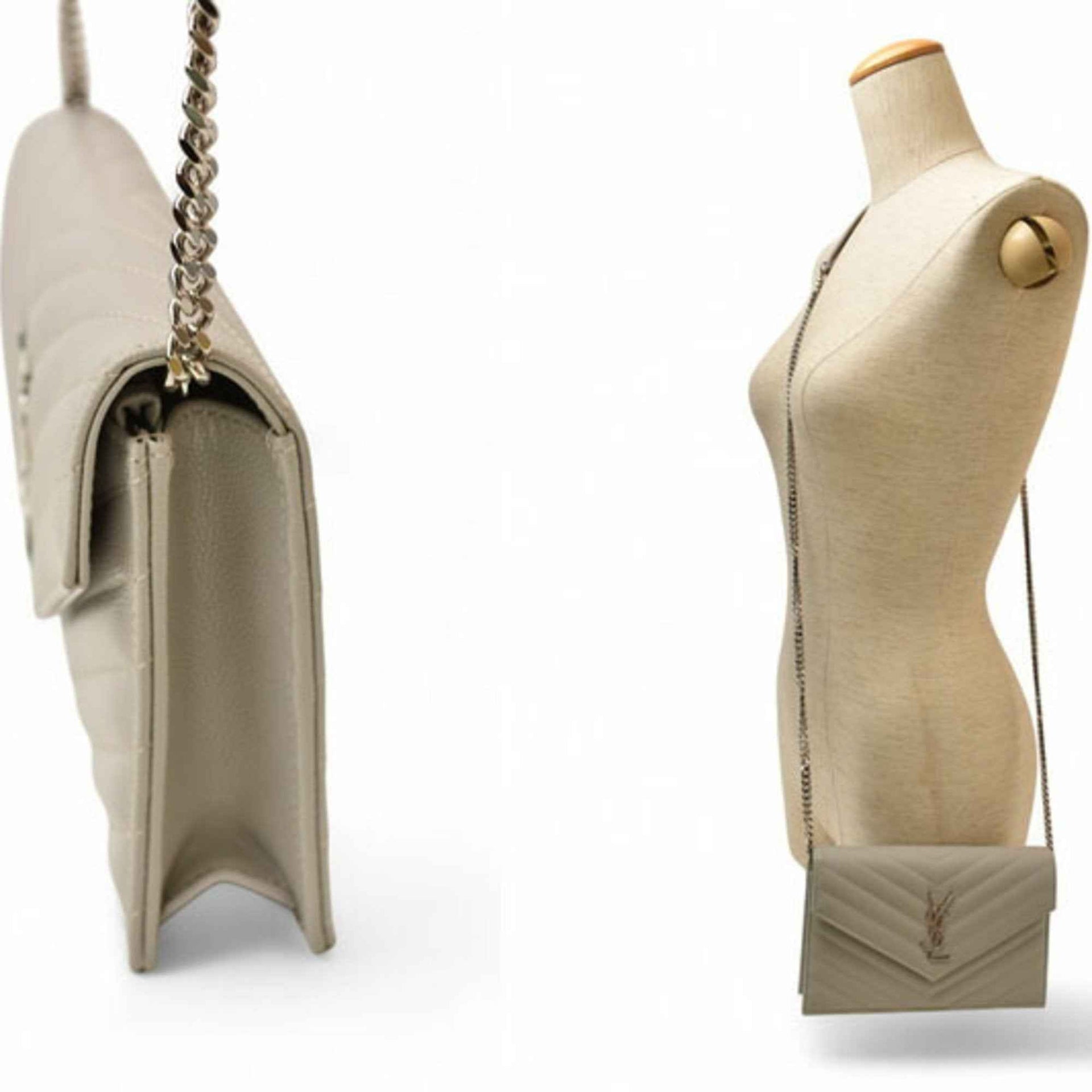 YSL Saint Laurent Monogram Envelope Bag, Light Gray, Chain Wallet, Clutch, Long 393953