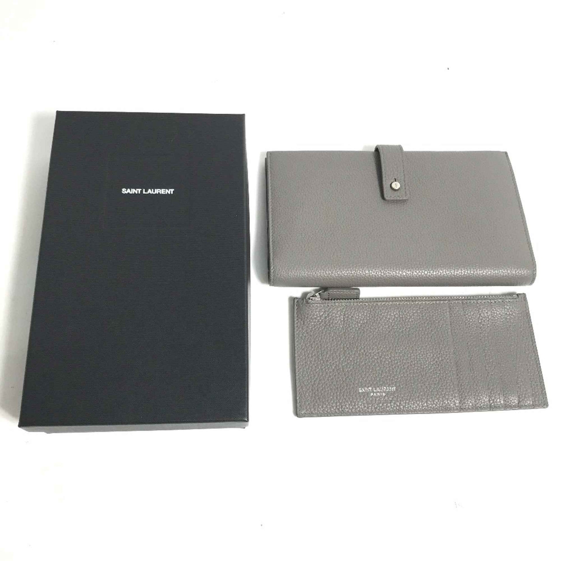 YVES SAINT LAURENT 504981 Sac de Jour Long Wallet with Coin Case, Leather, Gray, Women\'s
