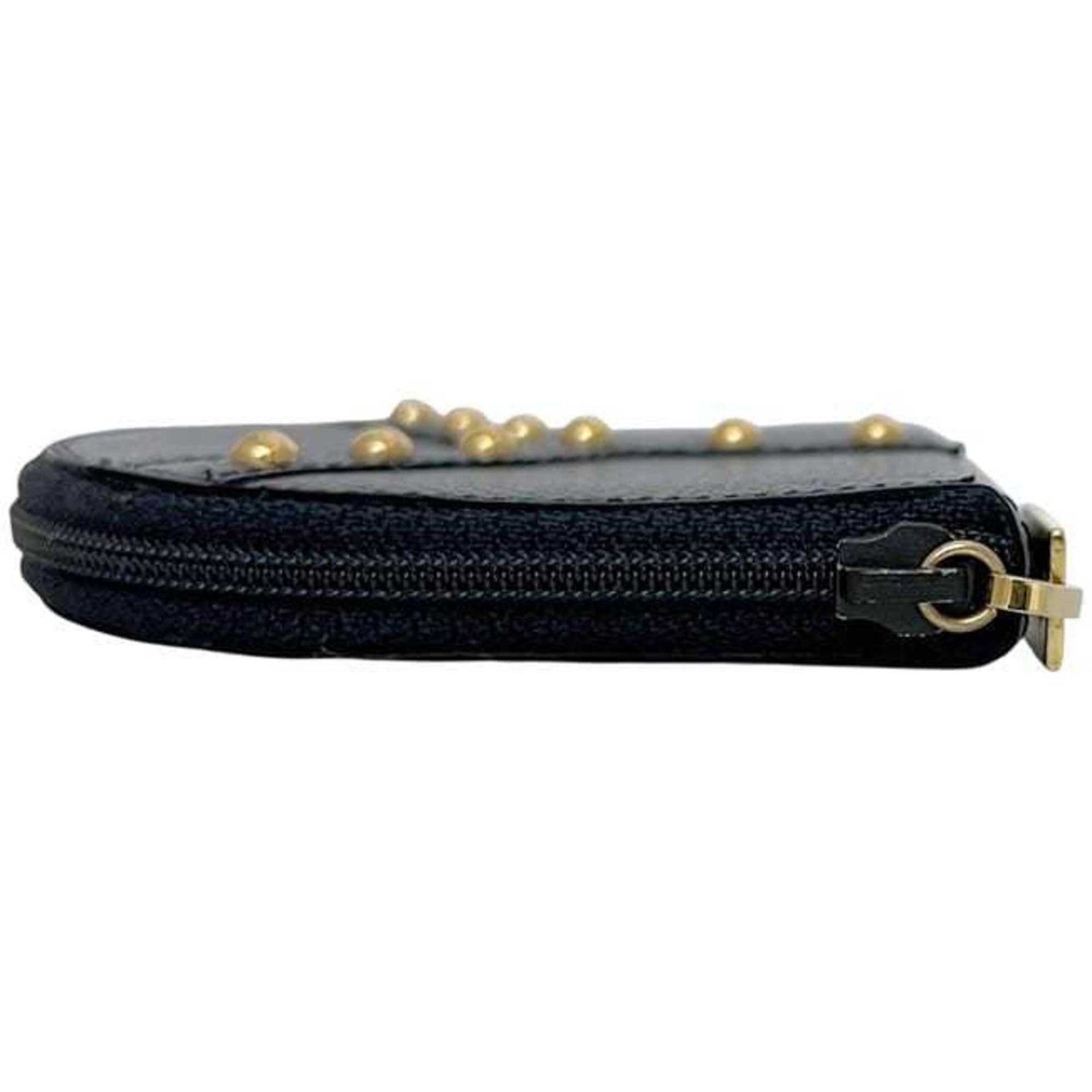 Yves Saint Laurent Coin Case ec-24317 Black Leather Studded Purse YVES SAINT LAURENT Y Compact Mini Wallet for Men and Women Grained