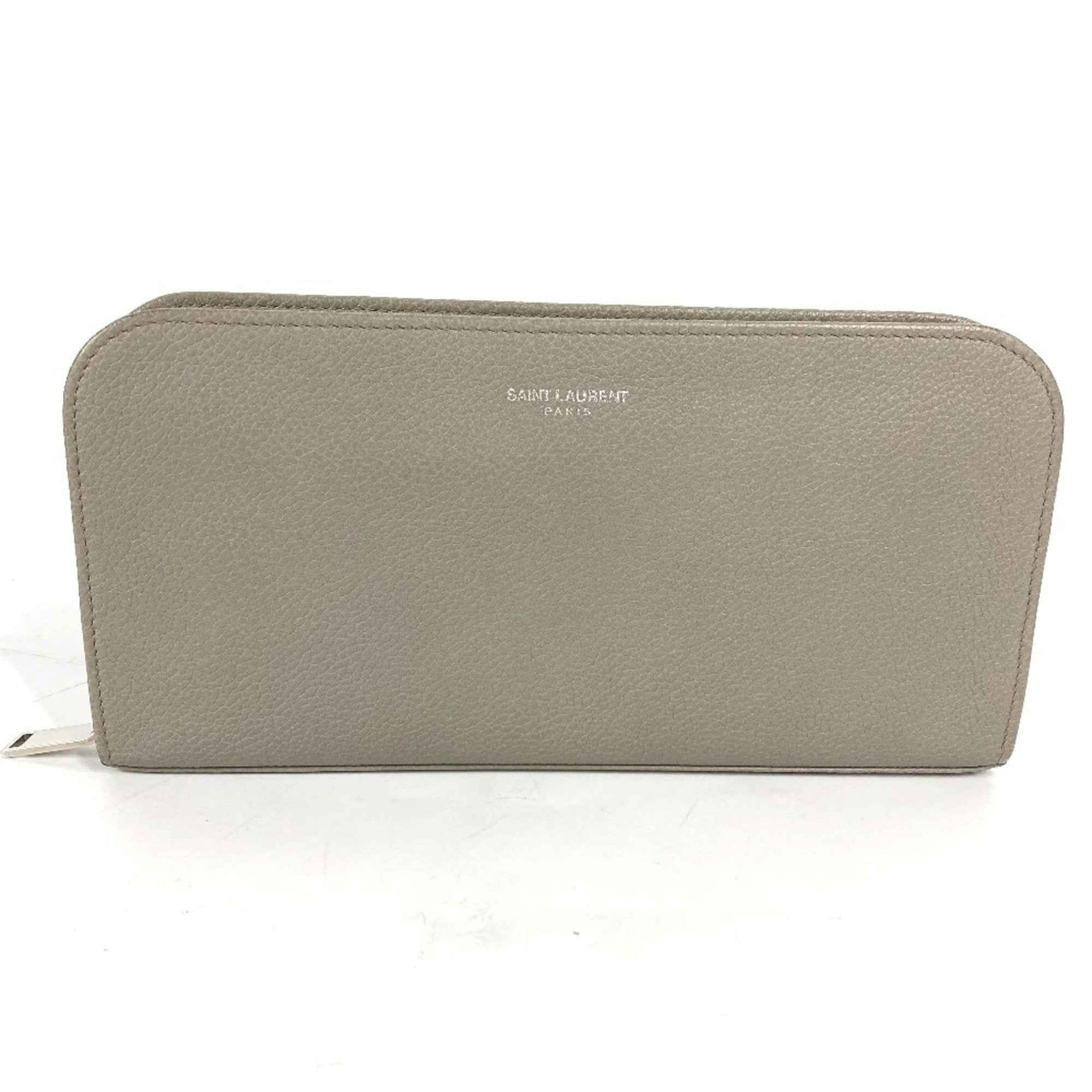 Yves Saint Laurent SAINT LAURENT PARIS 326599 Logo Round Zip Long Wallet Leather Women\'s Gray