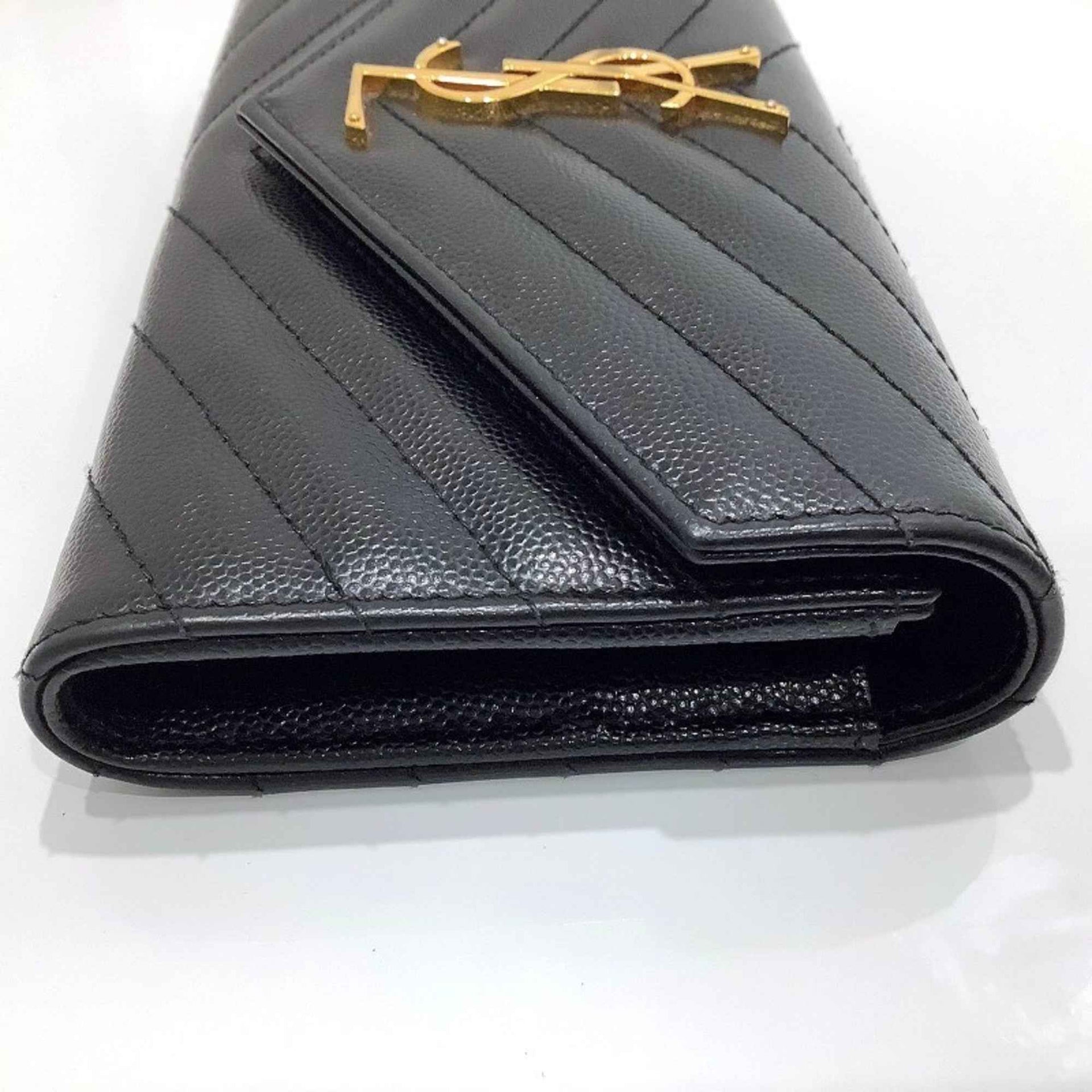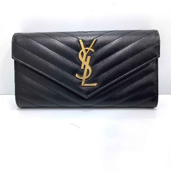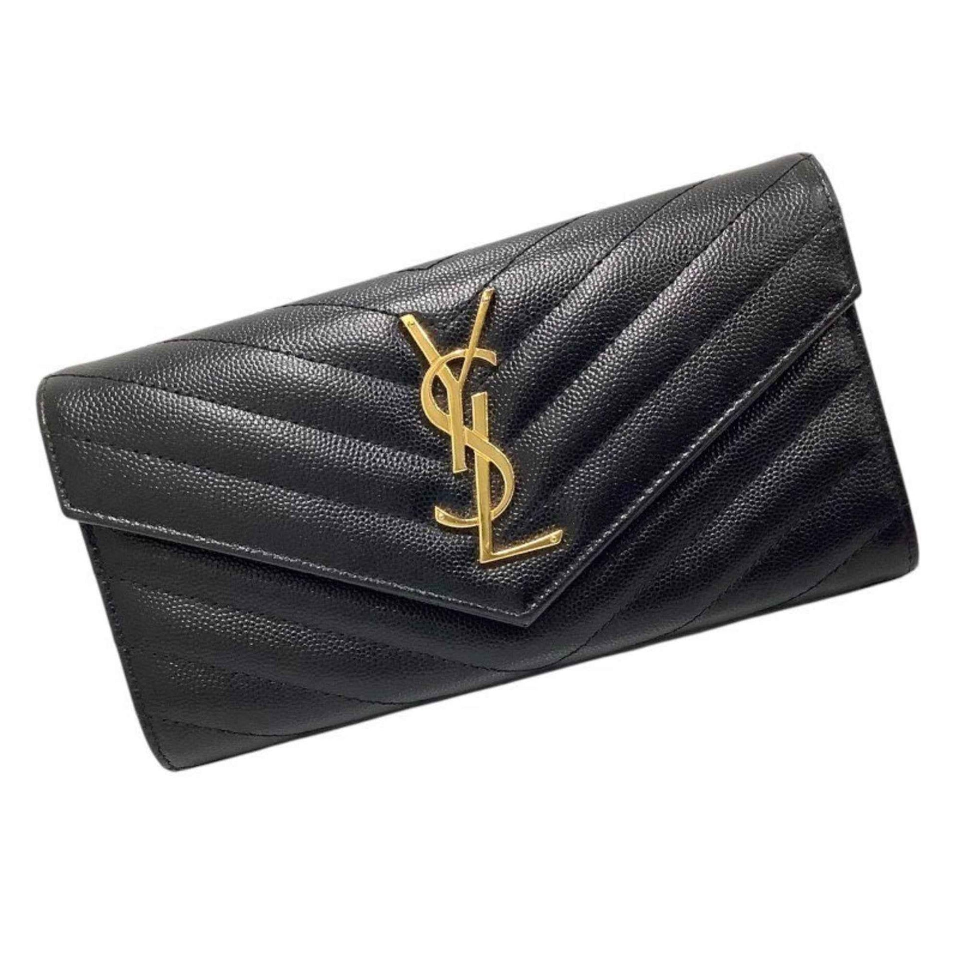 Yves Saint Laurent Saint Laurent Paris Caviar Quilted Long Flap Wallet, Black, 372264JA-24724