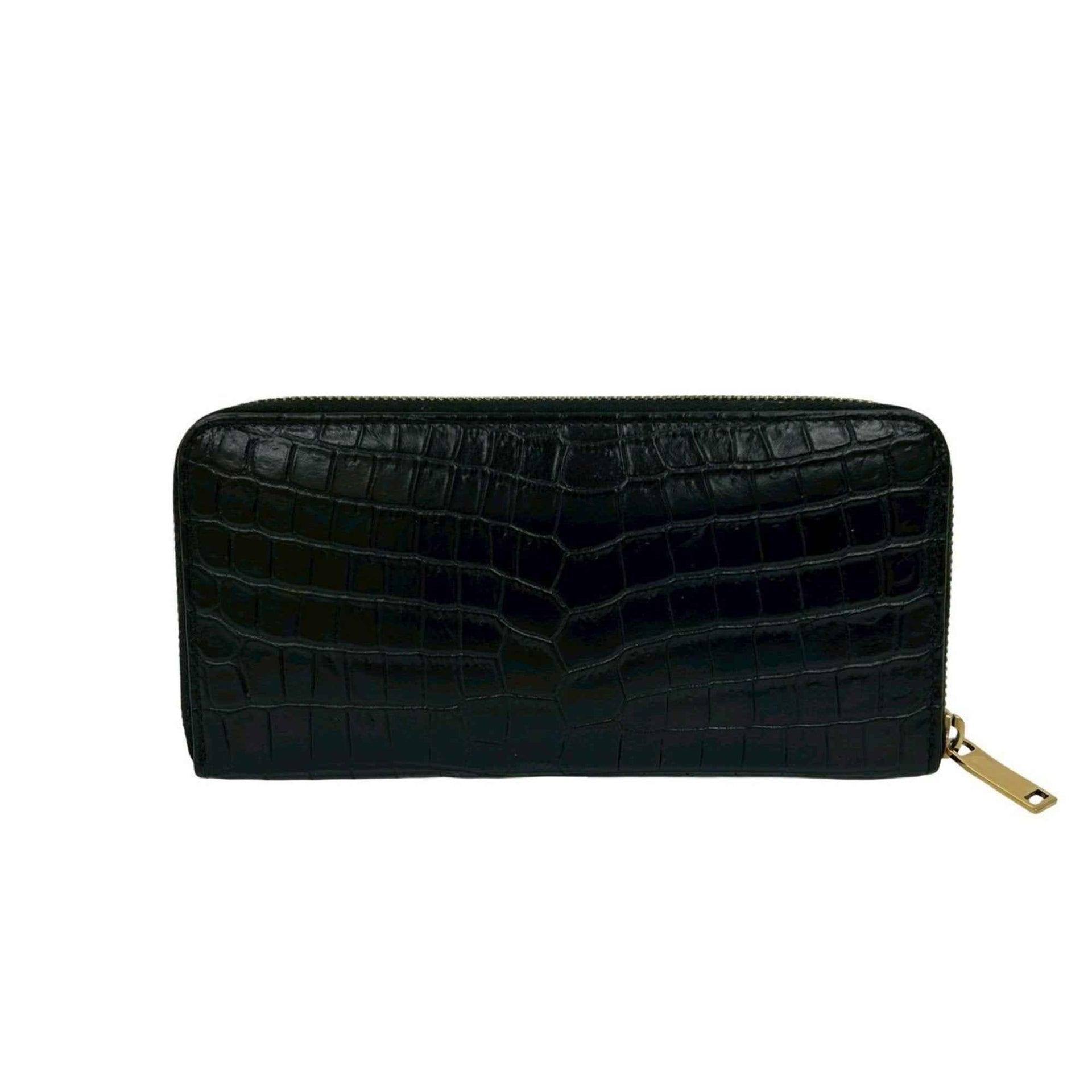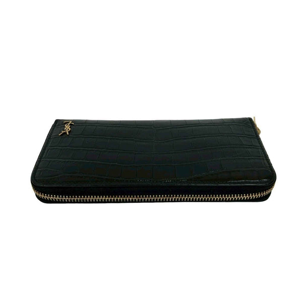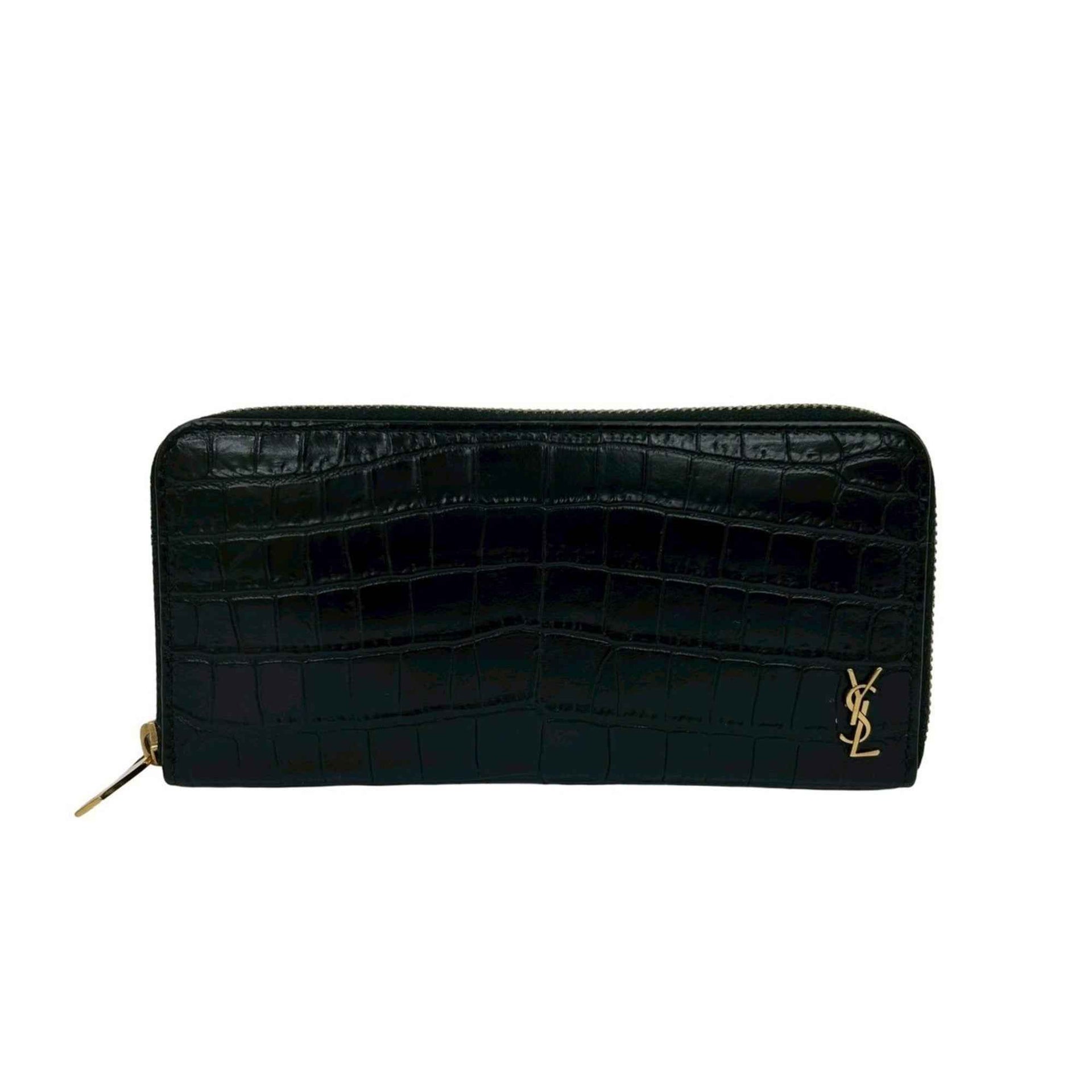 Yves Saint Laurent SAINT LAURENT PARIS YSL logo hardware crocodile-embossed leather round zipper long wallet in black (78079)