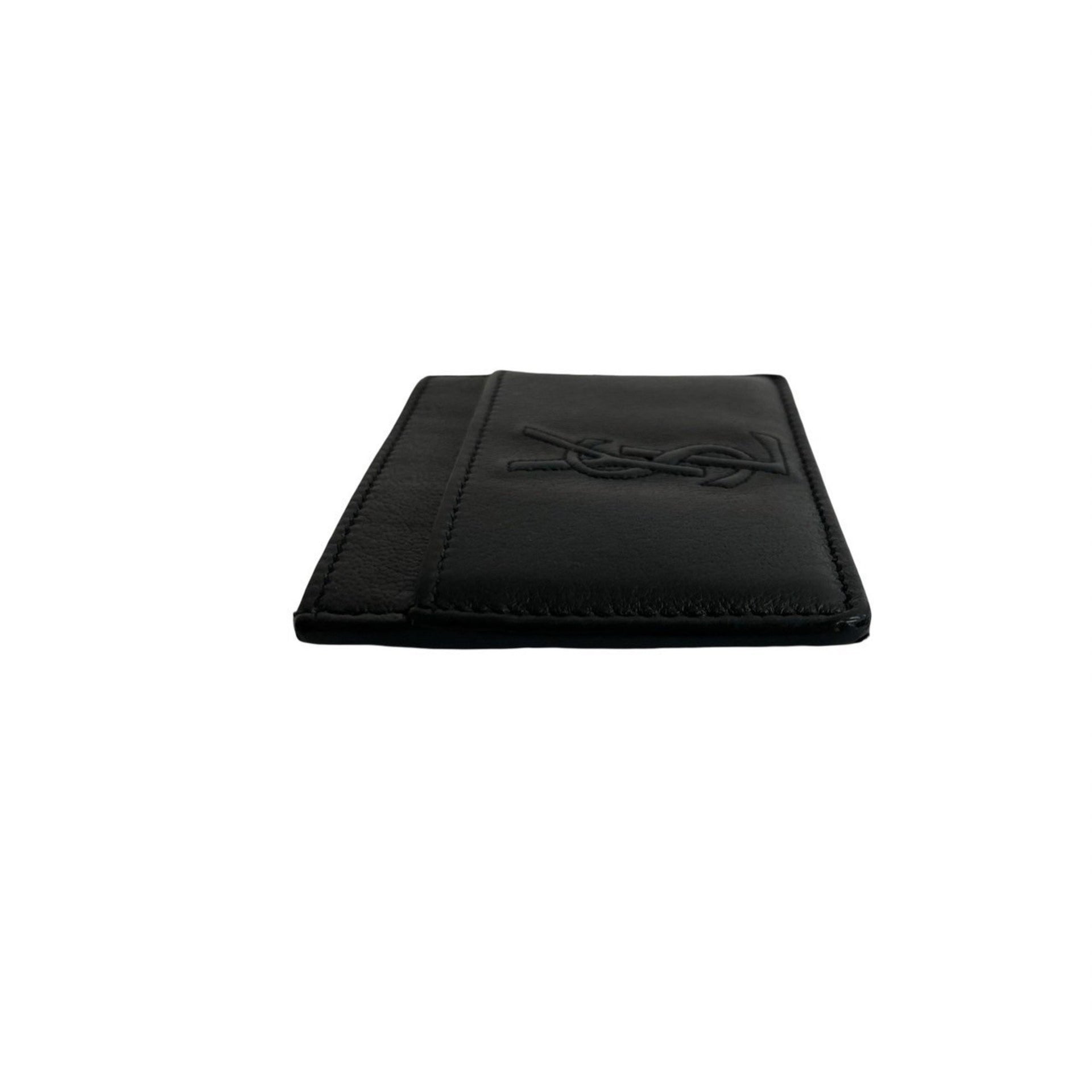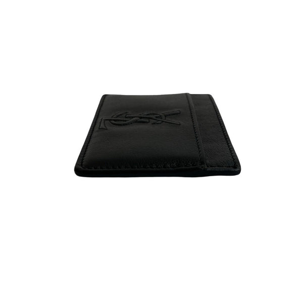 YVES SAINT LAURENT YSL logo stitched leather business card holder, black, 64838