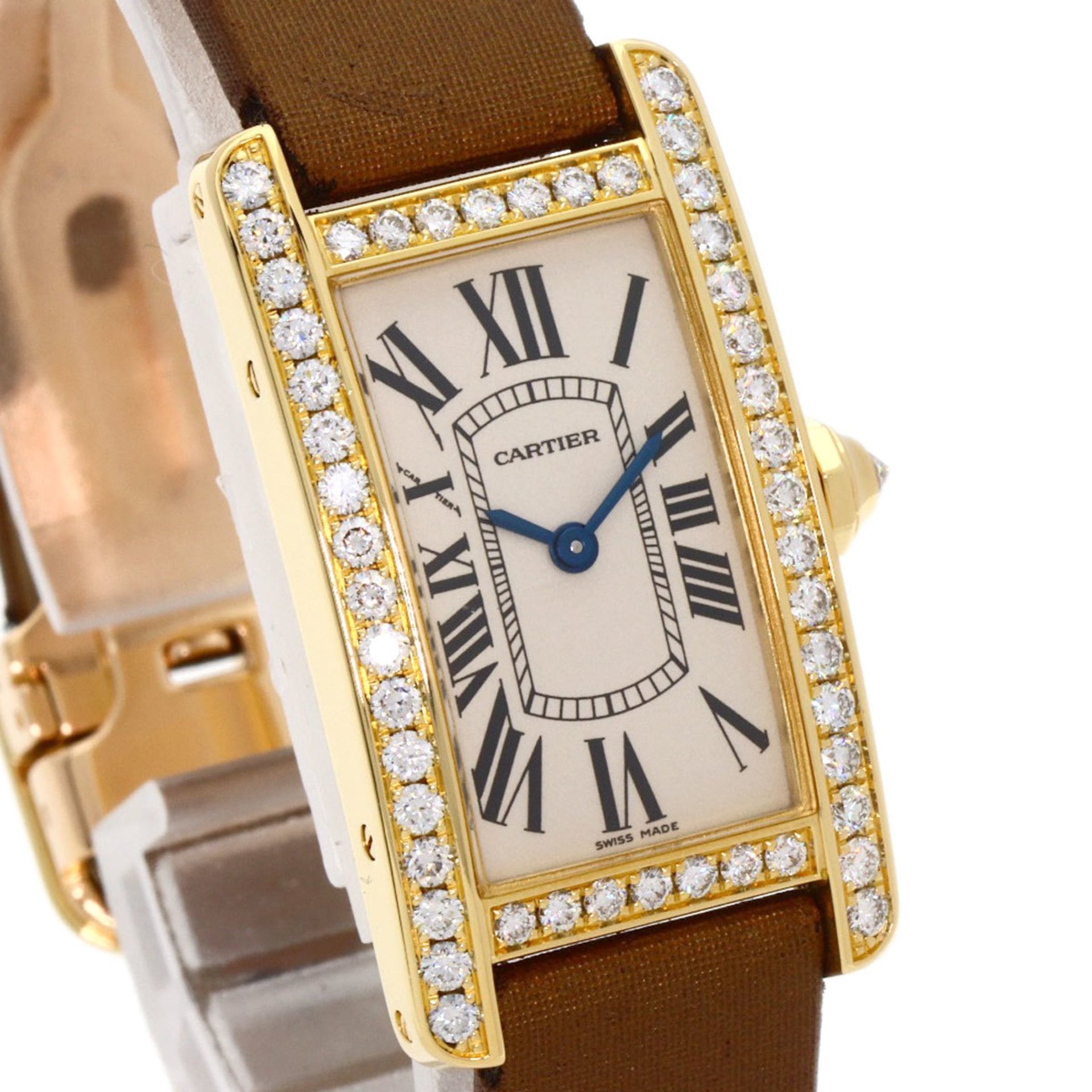 Cartier Tank Américaine SM Watch WB707231, 18K Yellow Gold with Satin Leather and Diamonds, Women\'s
