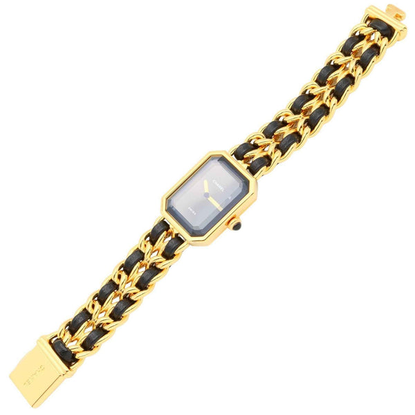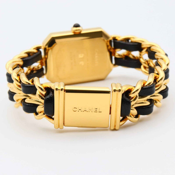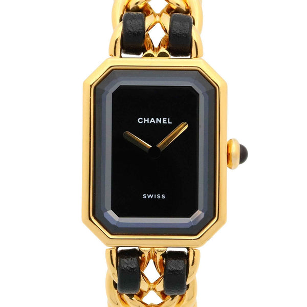 CHANEL Premiere S Watch, GP (Gold Plated), Leather, Women\'s, Black, H0001