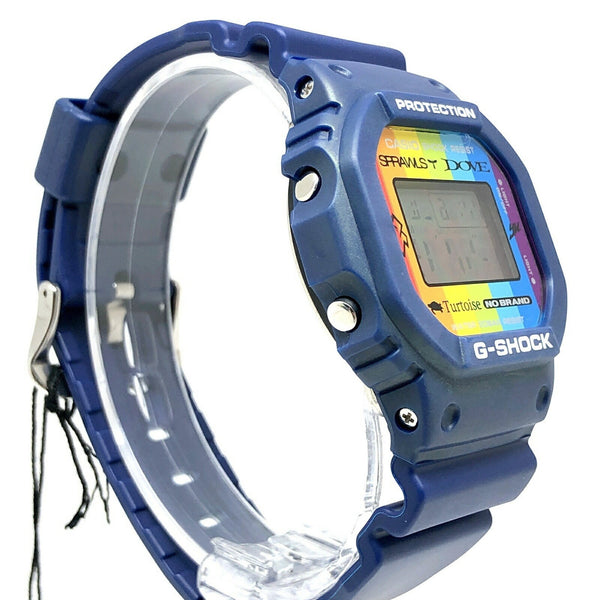 G-SHOCK CASIO DW-5600SF-2 Watch, a collaboration model with We Love Surfing, featuring rainbow dial and heart-shaped EL display. Released in 2006. Available at the Mikunigaoka store.