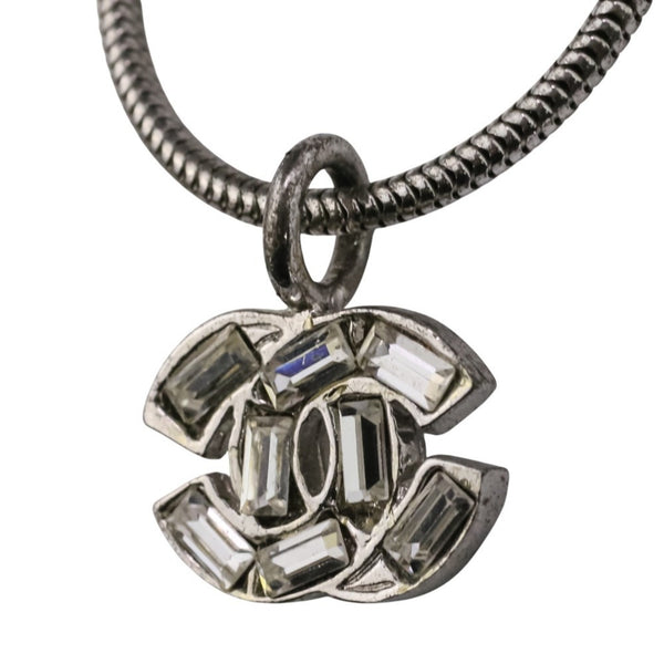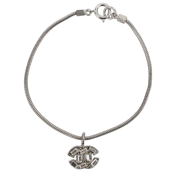 01P CHANEL Rhinestone Coco Mark Bracelet, Silver, Women\'s