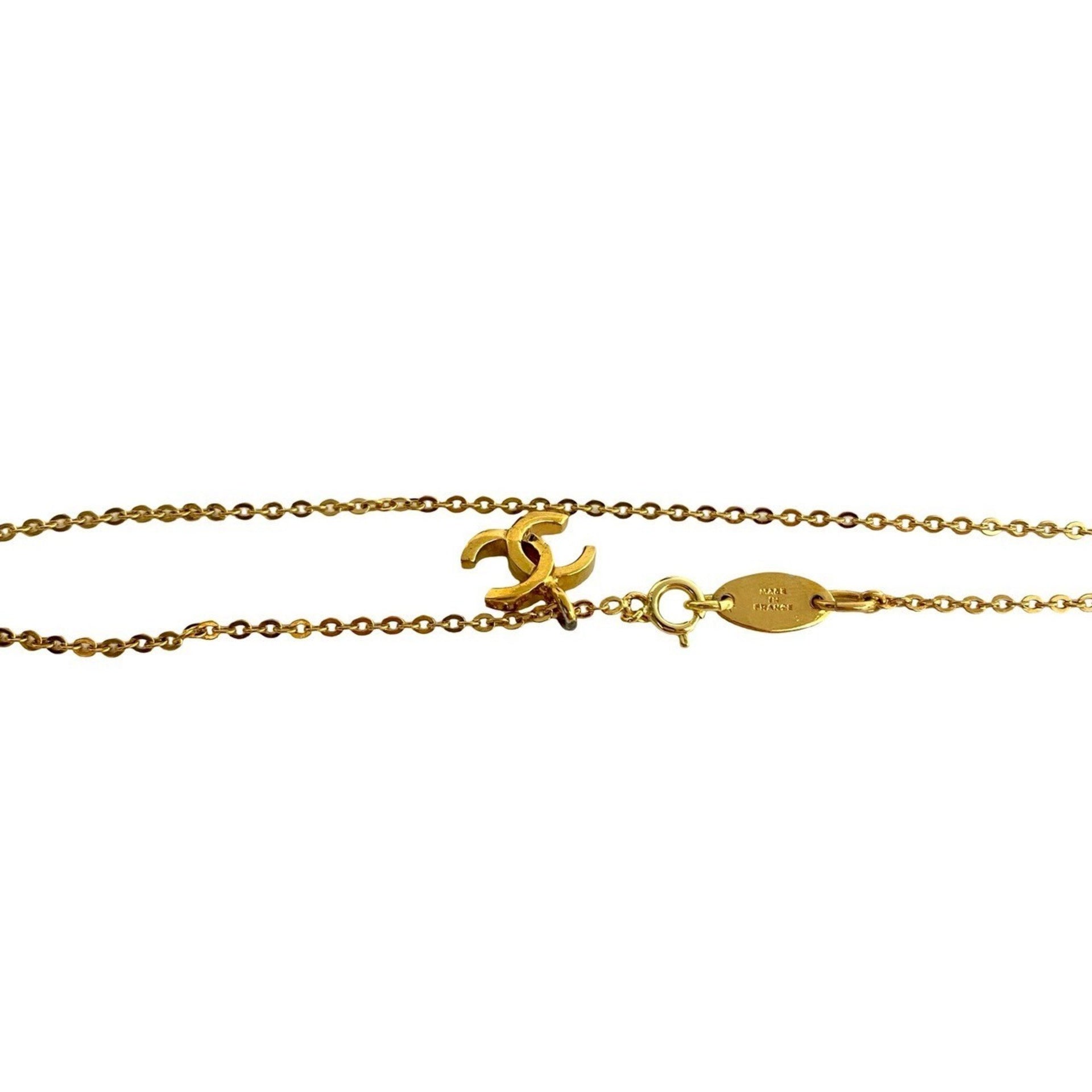 1982 CHANEL Vintage Coco Mark GP Necklace Pendant Choker Gold 109-2