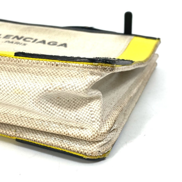BALENCIAGA 339937 Navy Pochette Clutch Bag/Pouch/Shoulder Bag in Leather/Coated Canvas, Yellow, Women\'s