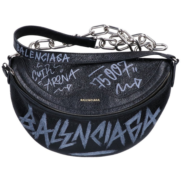 BALENCIAGA 551550 Souvenir Graffiti Body Bag Black Women\'s