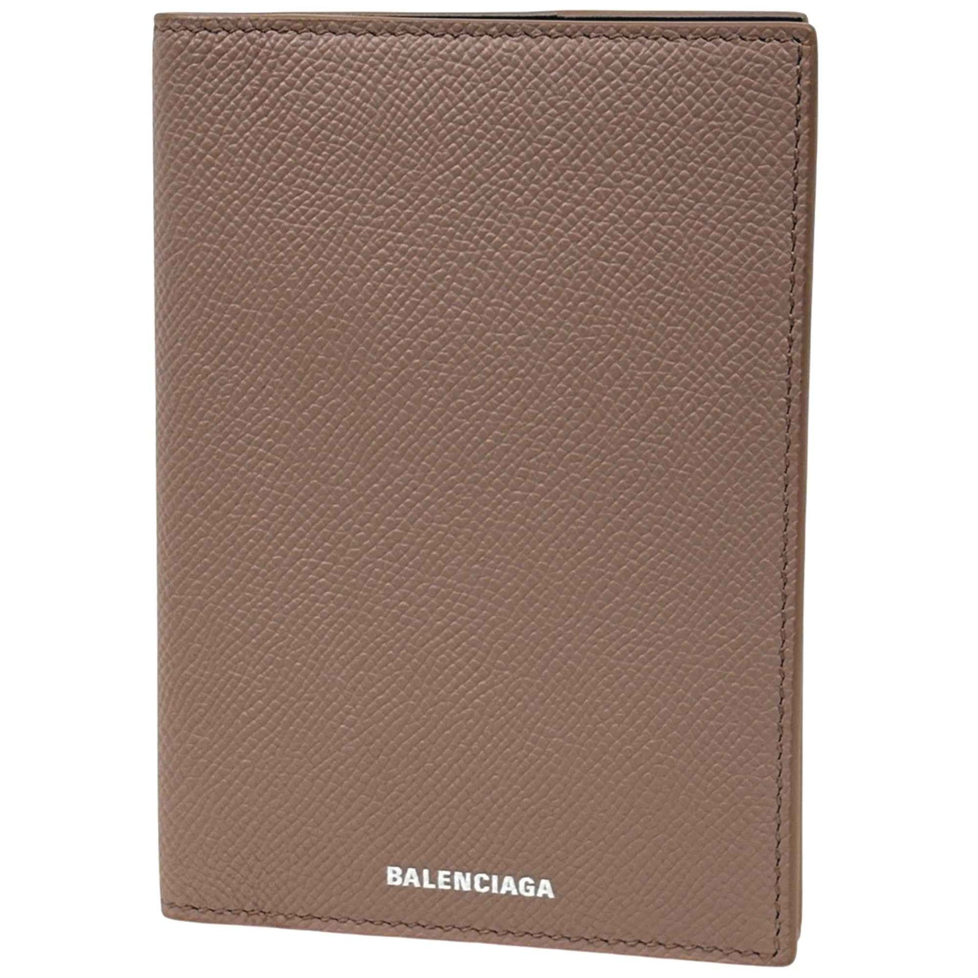 Balenciaga BALENCIAGA Logo Passport Case, Bifold Business Card Beige Leather, 566992, Women\'s