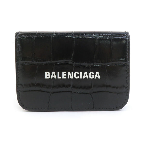 Balenciaga BALENCIAGA Tri-fold Wallet Embossed Leather Black Men\'s Women\'s h31624k