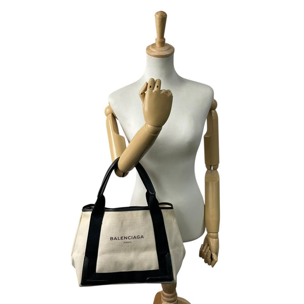BALENCIAGA Cabas Handbag Tote Bag in White and Black Canvas with Leather Pouch, Women\'s Z3