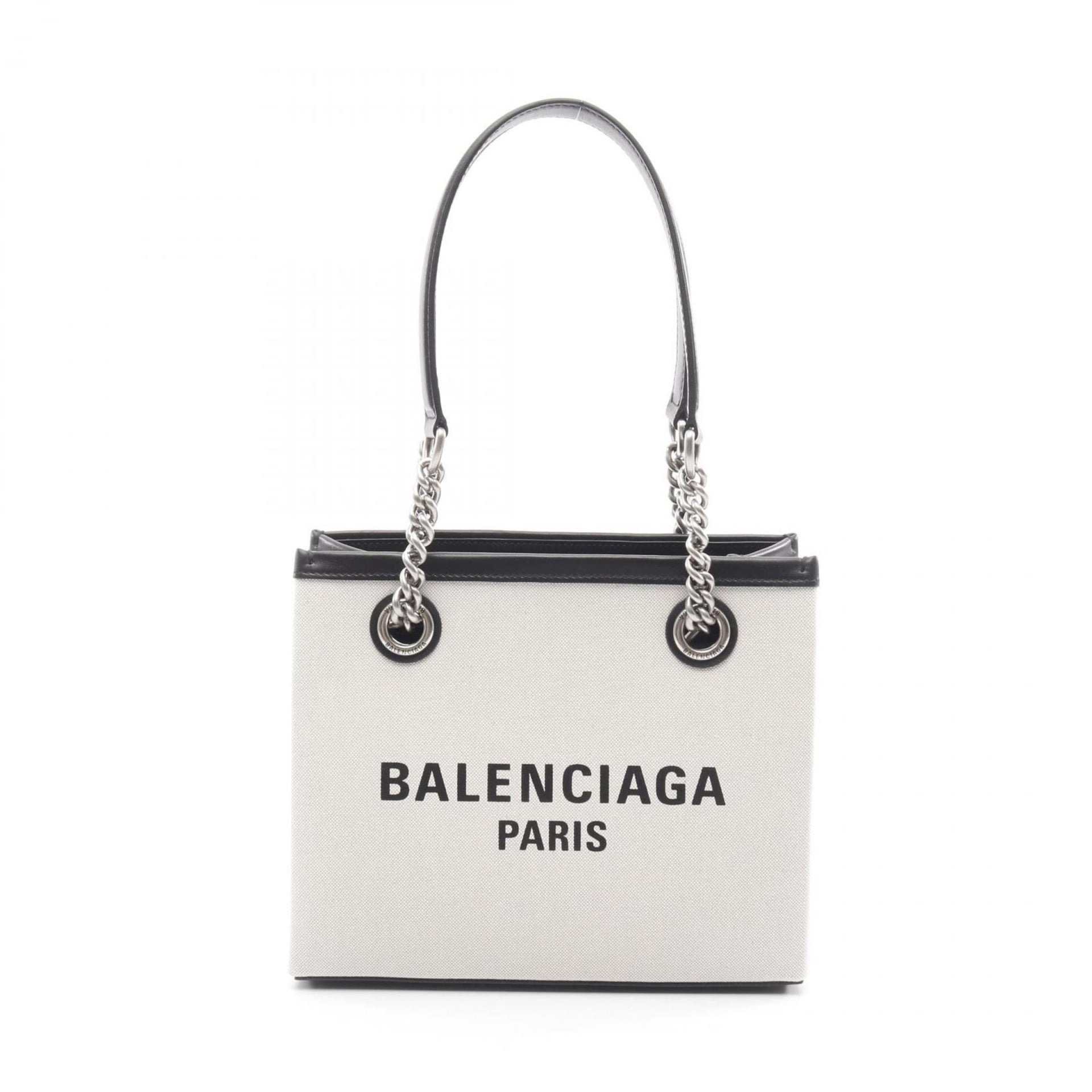 Balenciaga Duty Free Small Tote Bag, Canvas and Leather, Women\'s, Ivory Black, 7599412