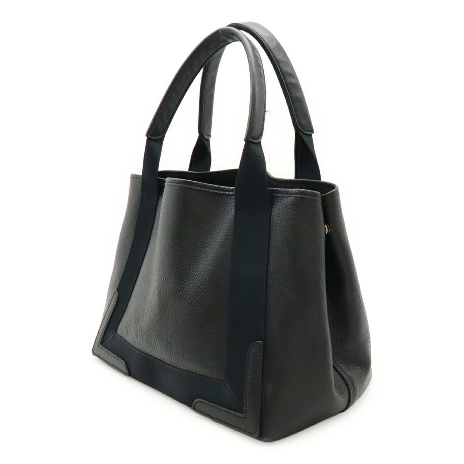 BALENCIAGA Navy Cabas S Small Handbag Tote Bag in Black Leather (339933)
