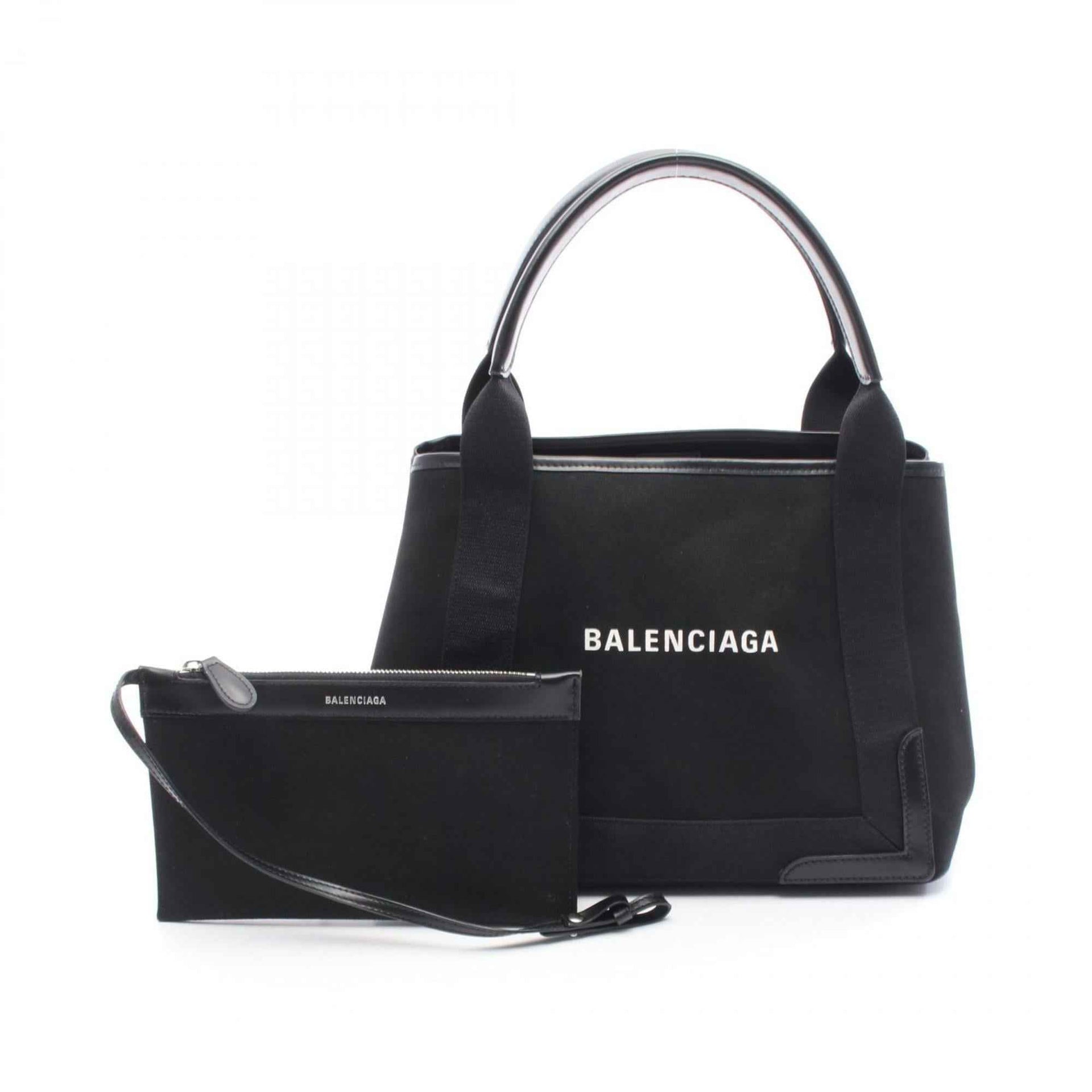 Balenciaga Navy Cabas S Tote Bag, Canvas and Leather, Women\'s, Black, 339933