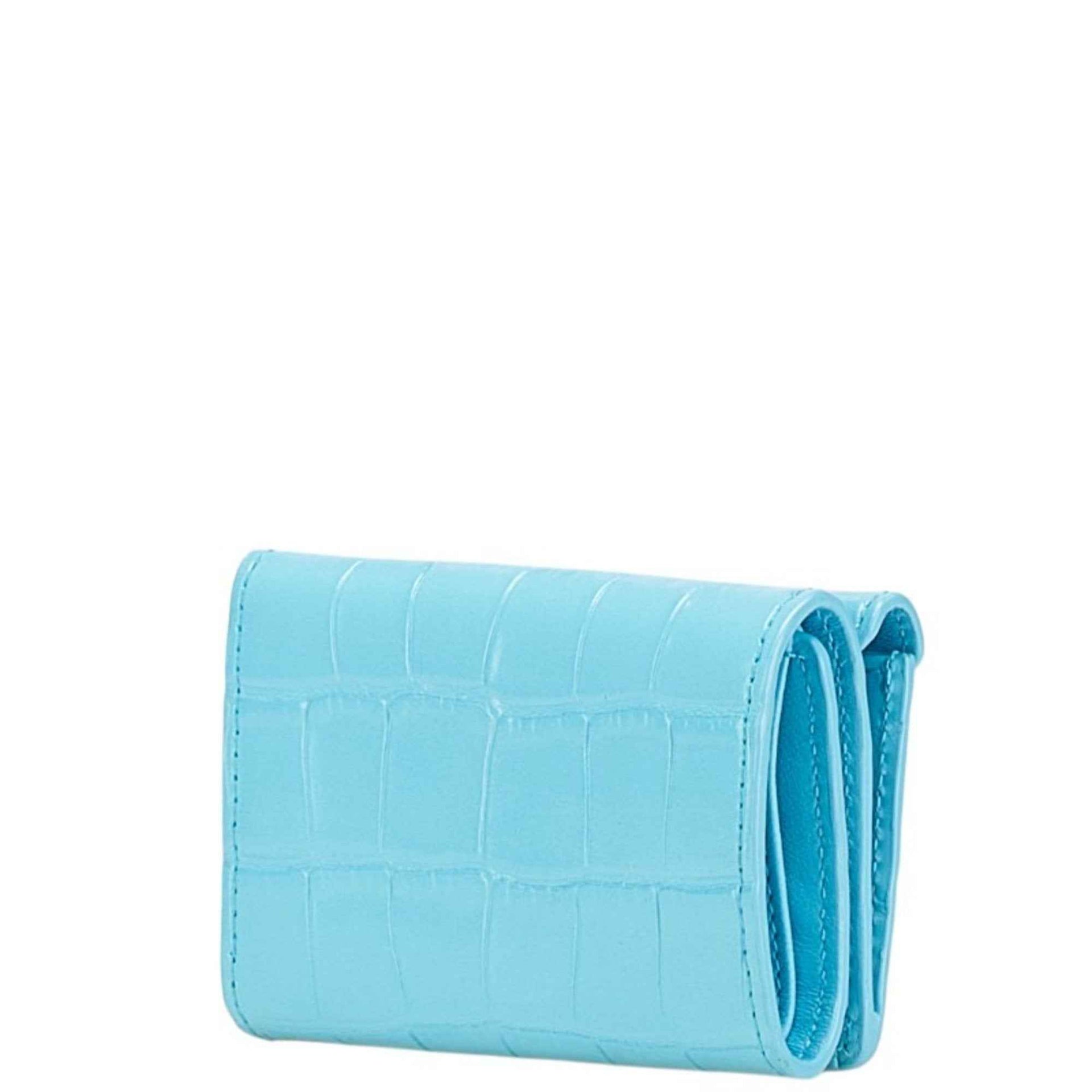 Balenciaga Paper Mini Wallet, Crocodile Embossed Tri-fold Compact Light Blue Leather, 391446, Women\'s