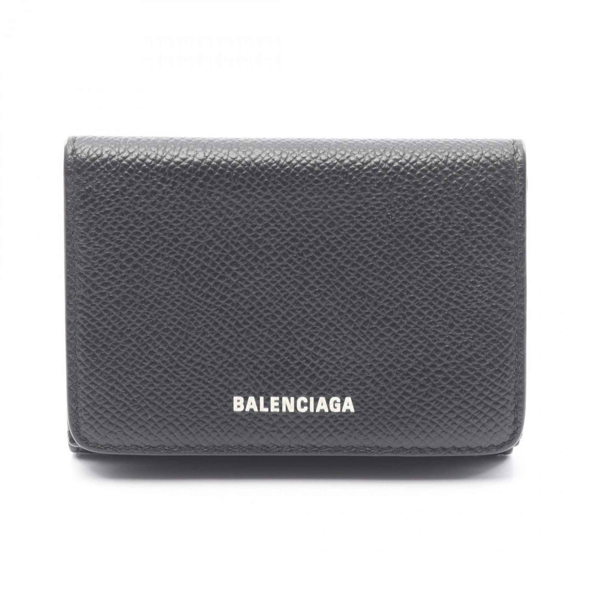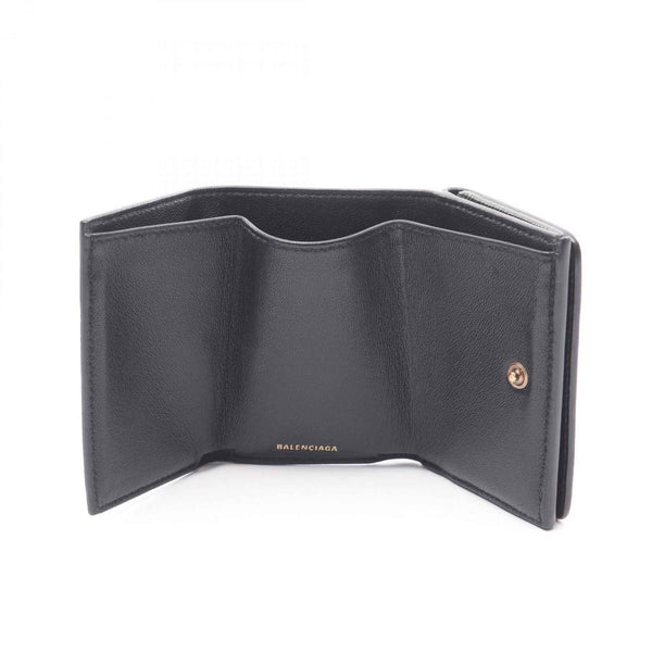 Balenciaga VILLE Tri-fold Wallet, Leather, Women\'s, Black, 558208