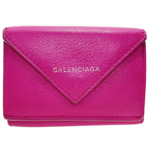 Balenciaga Wallet Paper Mini Leather Pink 391446 BALENCIAGA Tri-fold Compact PAPIER NSR-15259