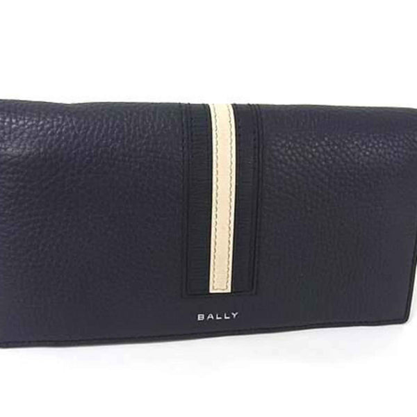 BALLY Men\'s Ribbon Navy Leather Bifold Long Wallet