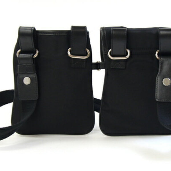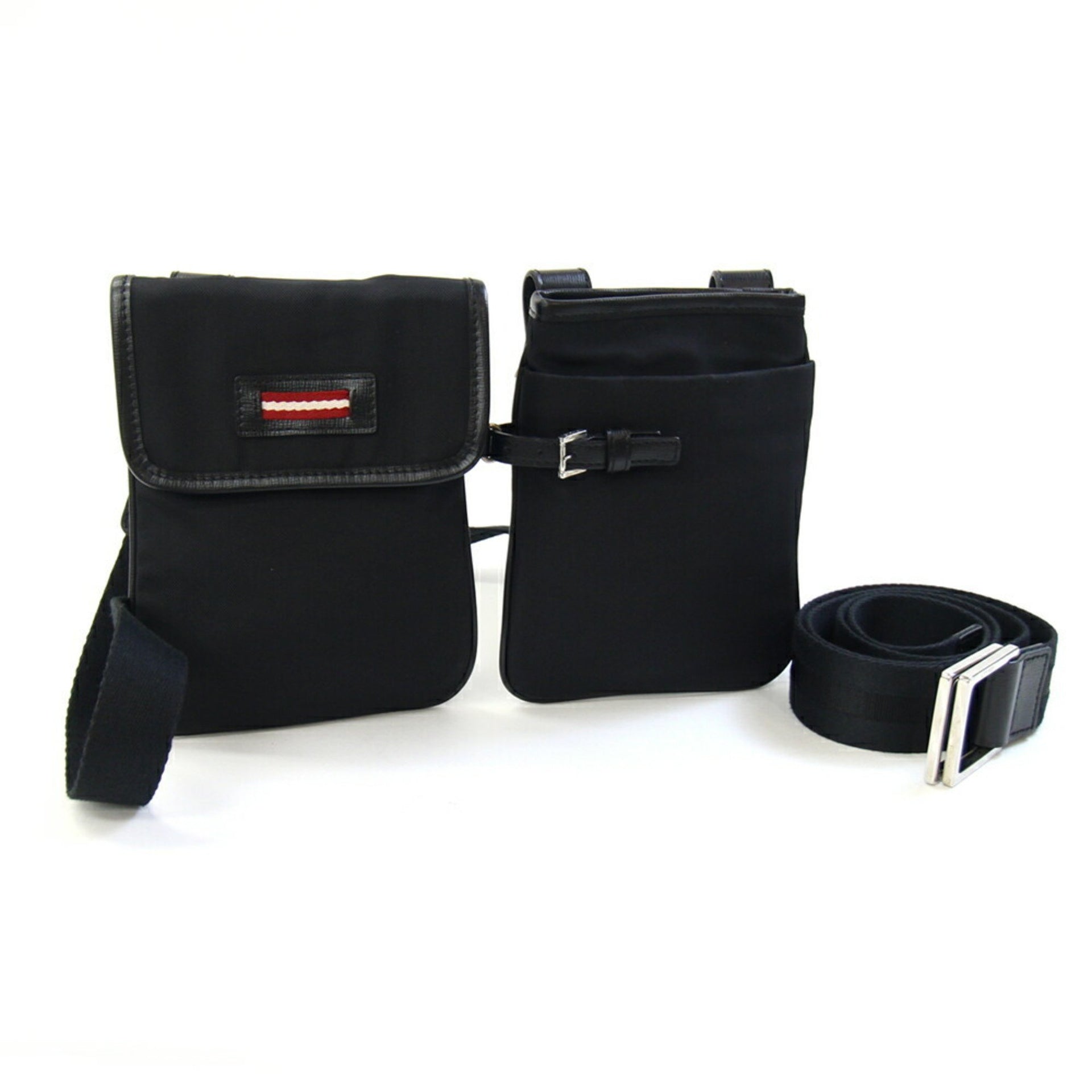 BALLY Shoulder Bag Black Nylon Canvas Leather Waist Hip Men\'s