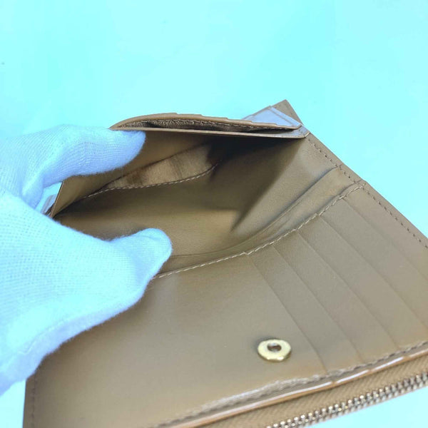 BOTTEGA VENETA 667130 Compact Cassette Wallet, Medium, Bi-fold Zipper Intrecciato Leather, Women\'s, Beige