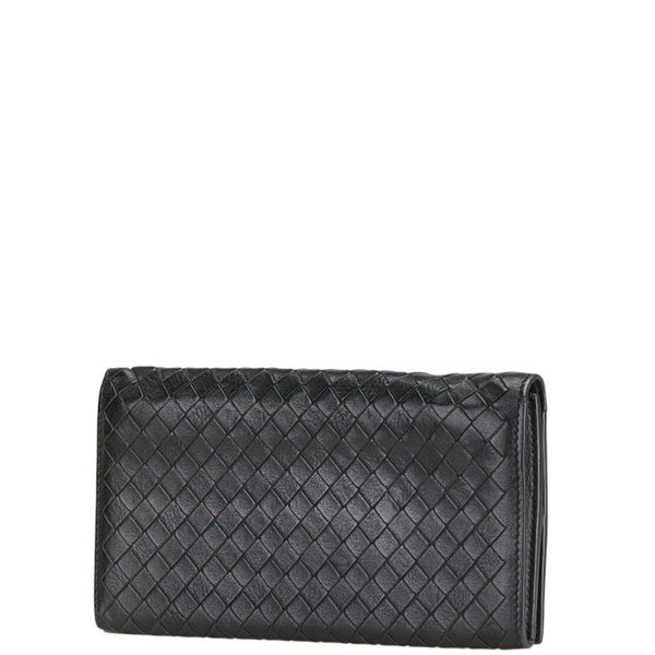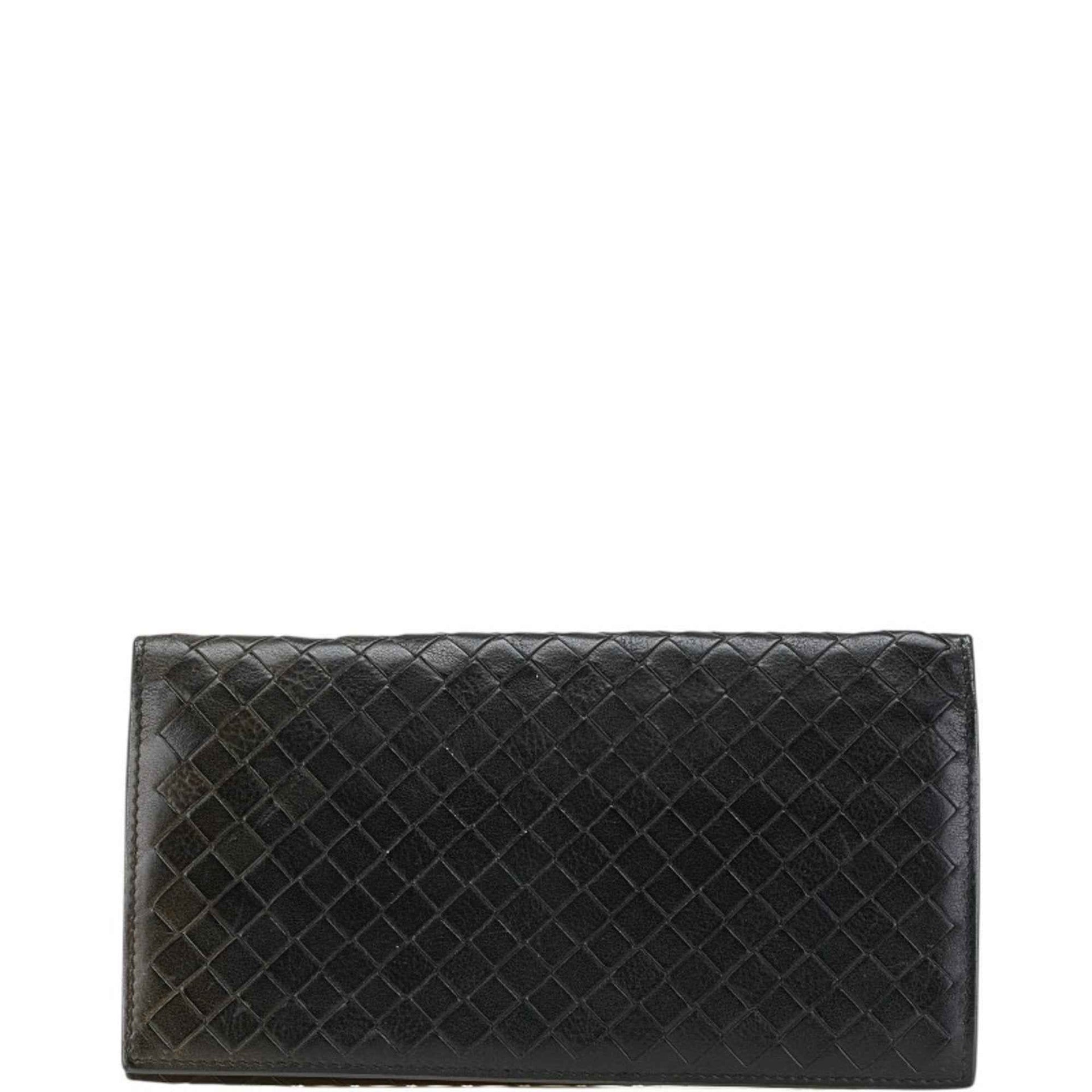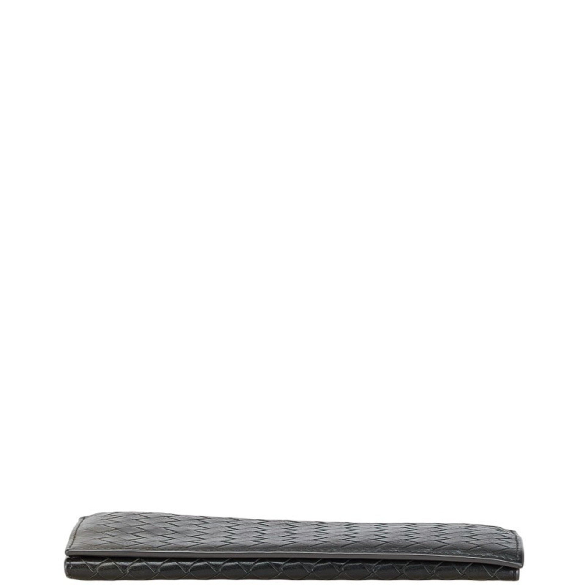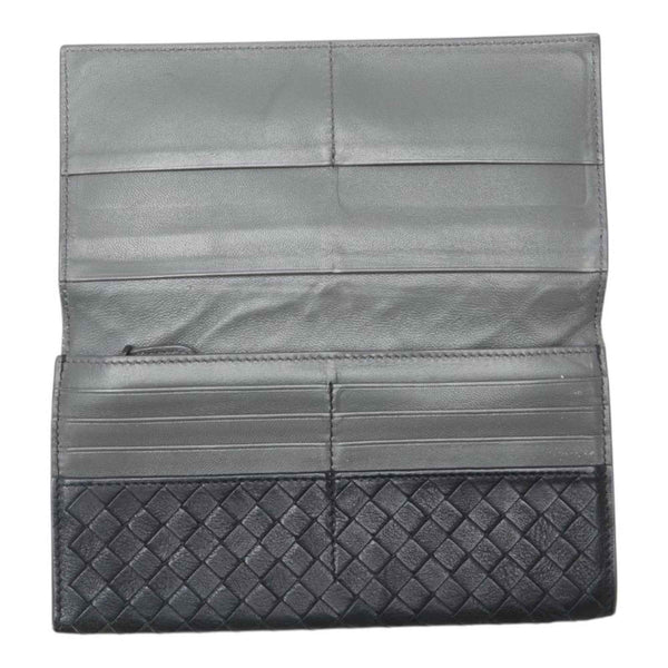 Bottega Veneta Intrecciato Bi-fold Wallet, Long Black/Grey Leather, Women\'s