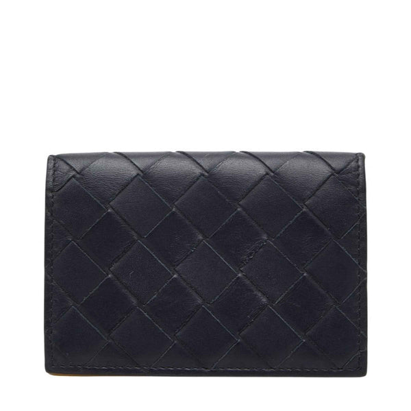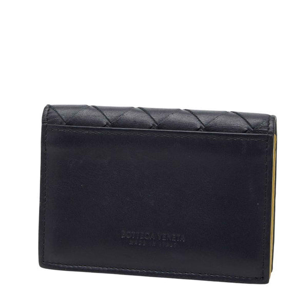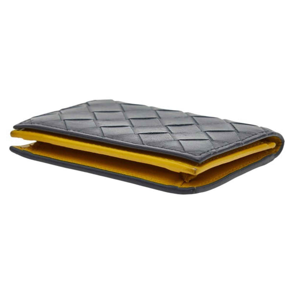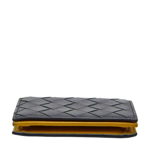 Bottega Veneta Intrecciato Business Card Holder/Card Case, Navy and Yellow Leather, Men\'s