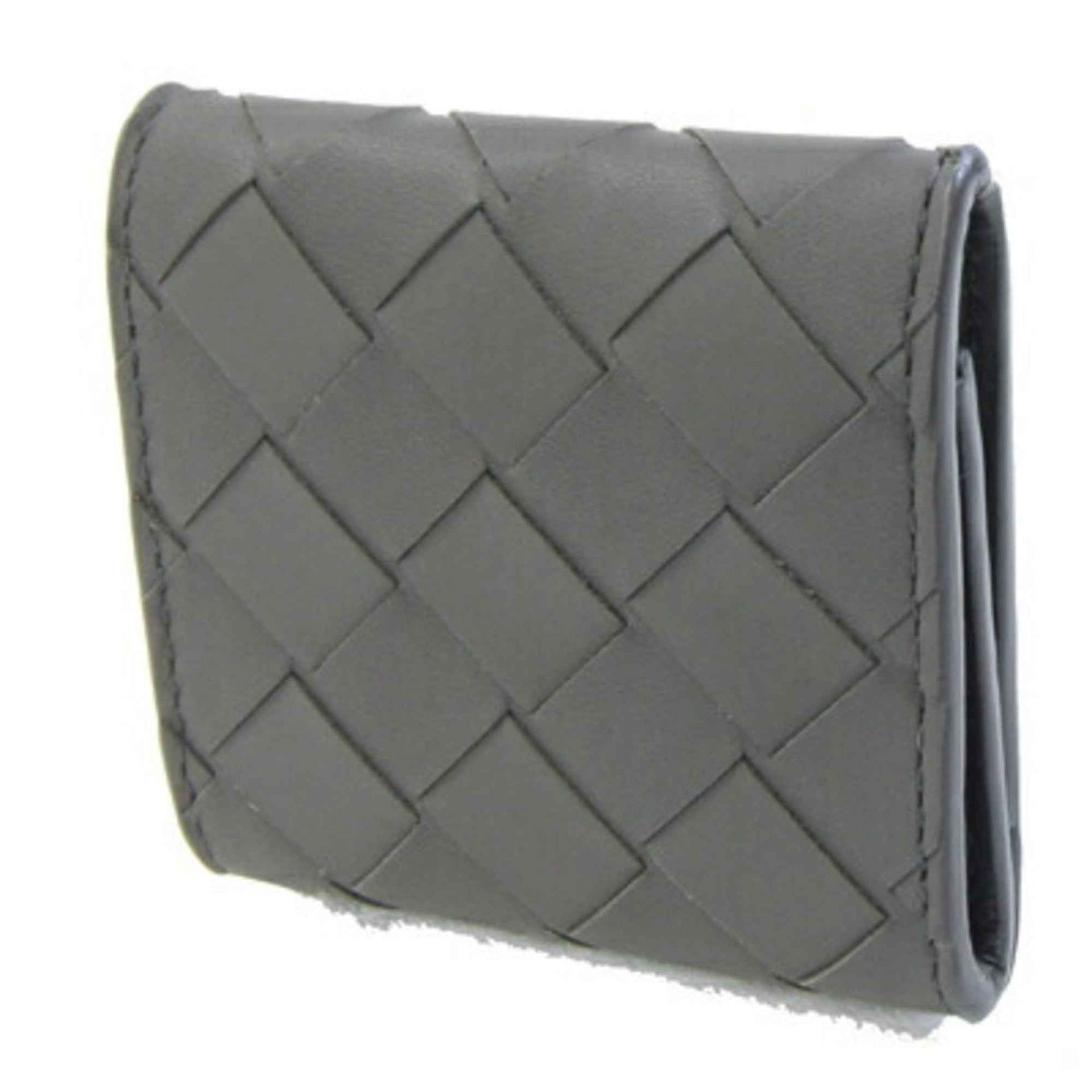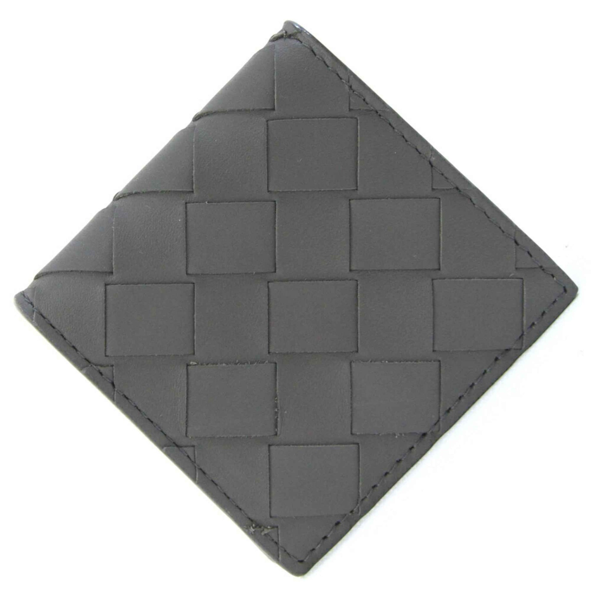 Bottega Veneta Intrecciato Coin Case 596579 Dark Gray Leather Compact Wallet with Purse, Tri-Fold Mini Wallet, Square, for Men and Women