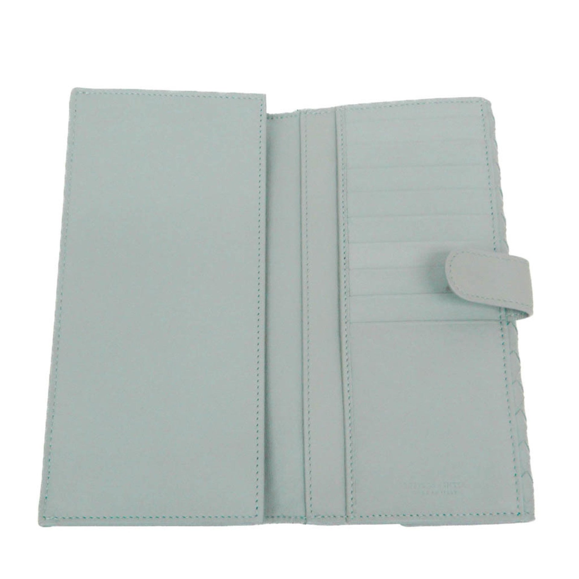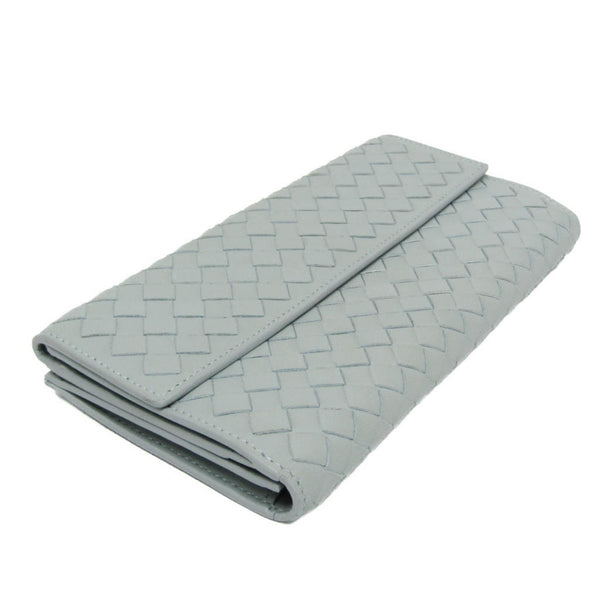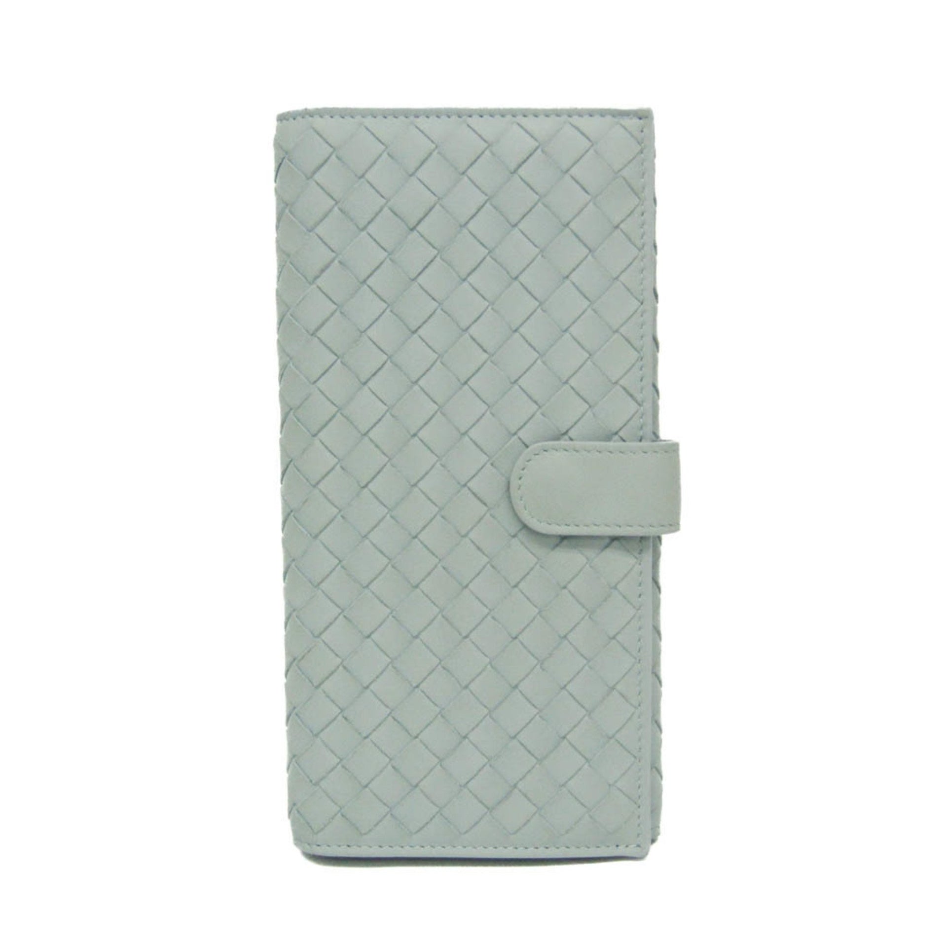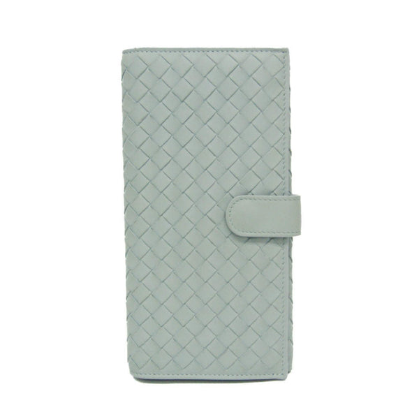 Bottega Veneta Intrecciato Men,Women Leather Long Wallet (bi-fold) Light Blue Gray