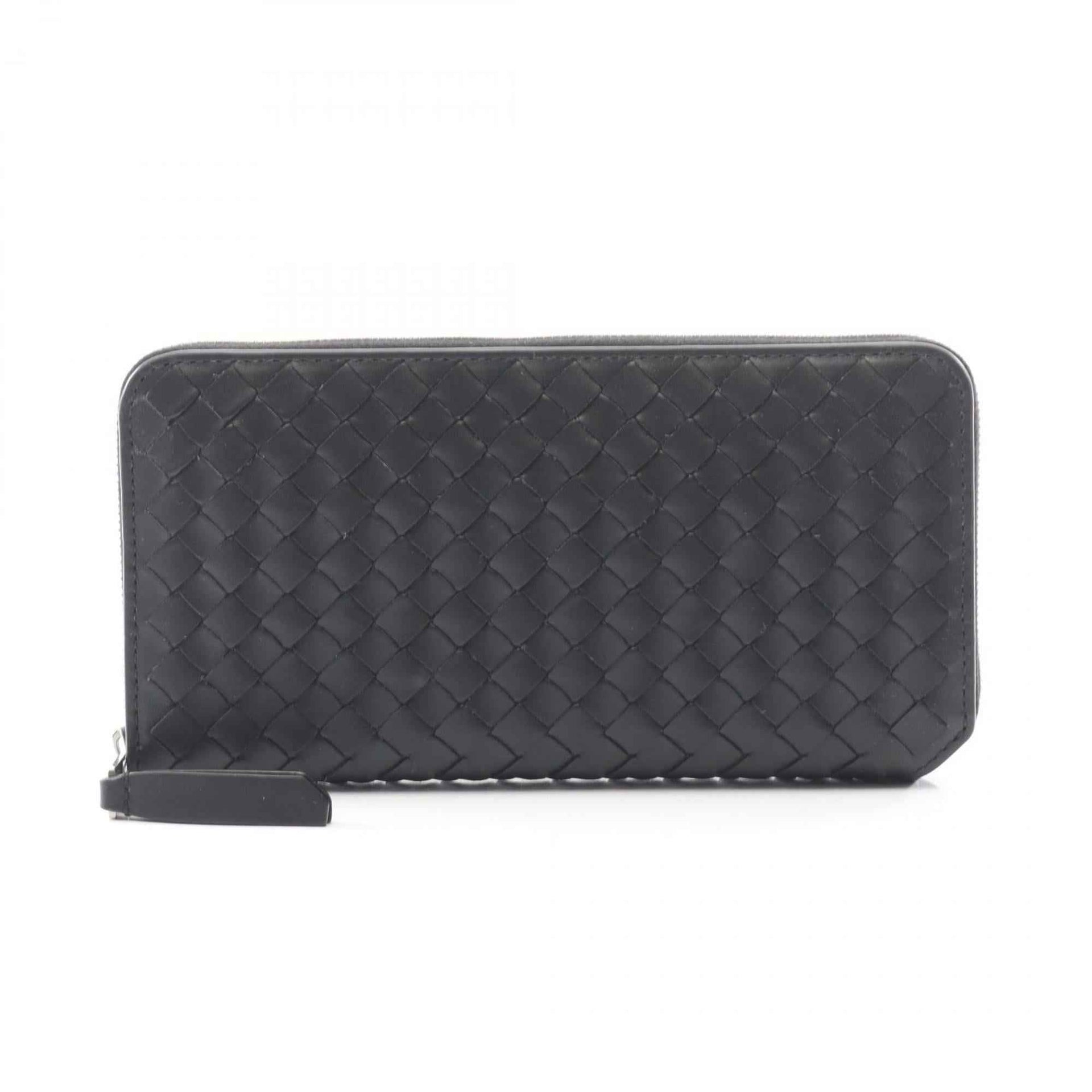 Bottega Veneta Intrecciato Piccolo Zip-Around Wallet, Men\'s Leather, Black