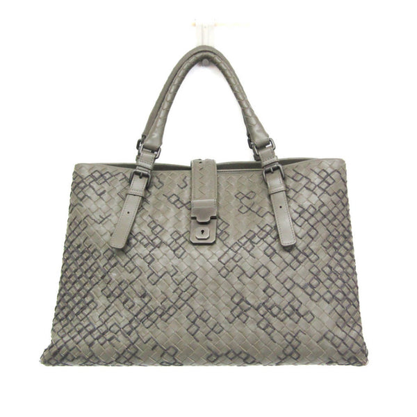 Bottega Veneta Intrecciato Rome Leather Handbag Gray Khaki