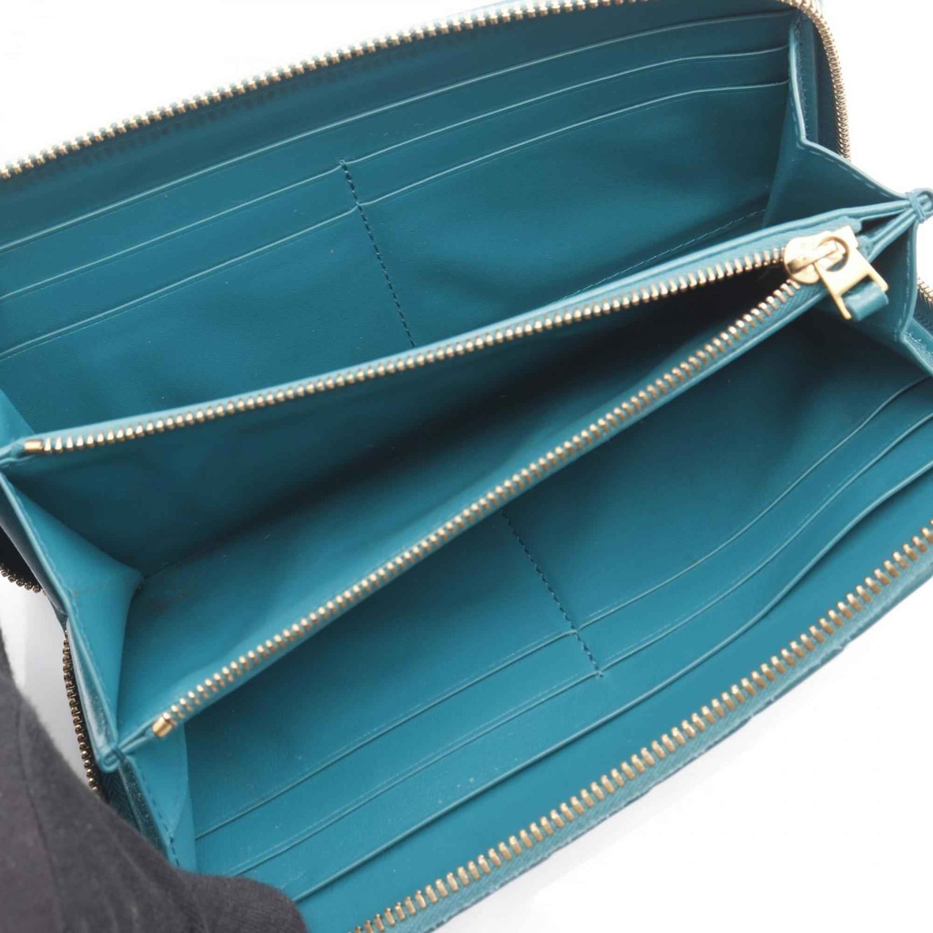 Bottega Veneta Intrecciato Round Long Wallet, Leather, Men\'s and Women\'s, Green
