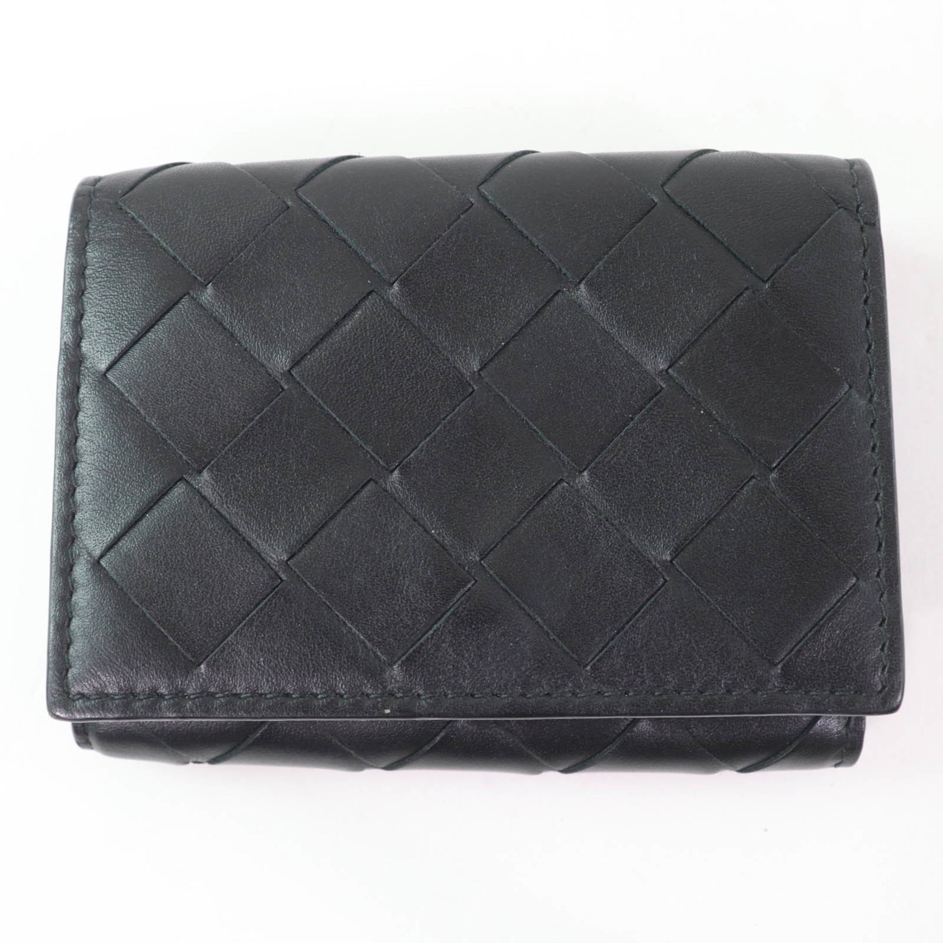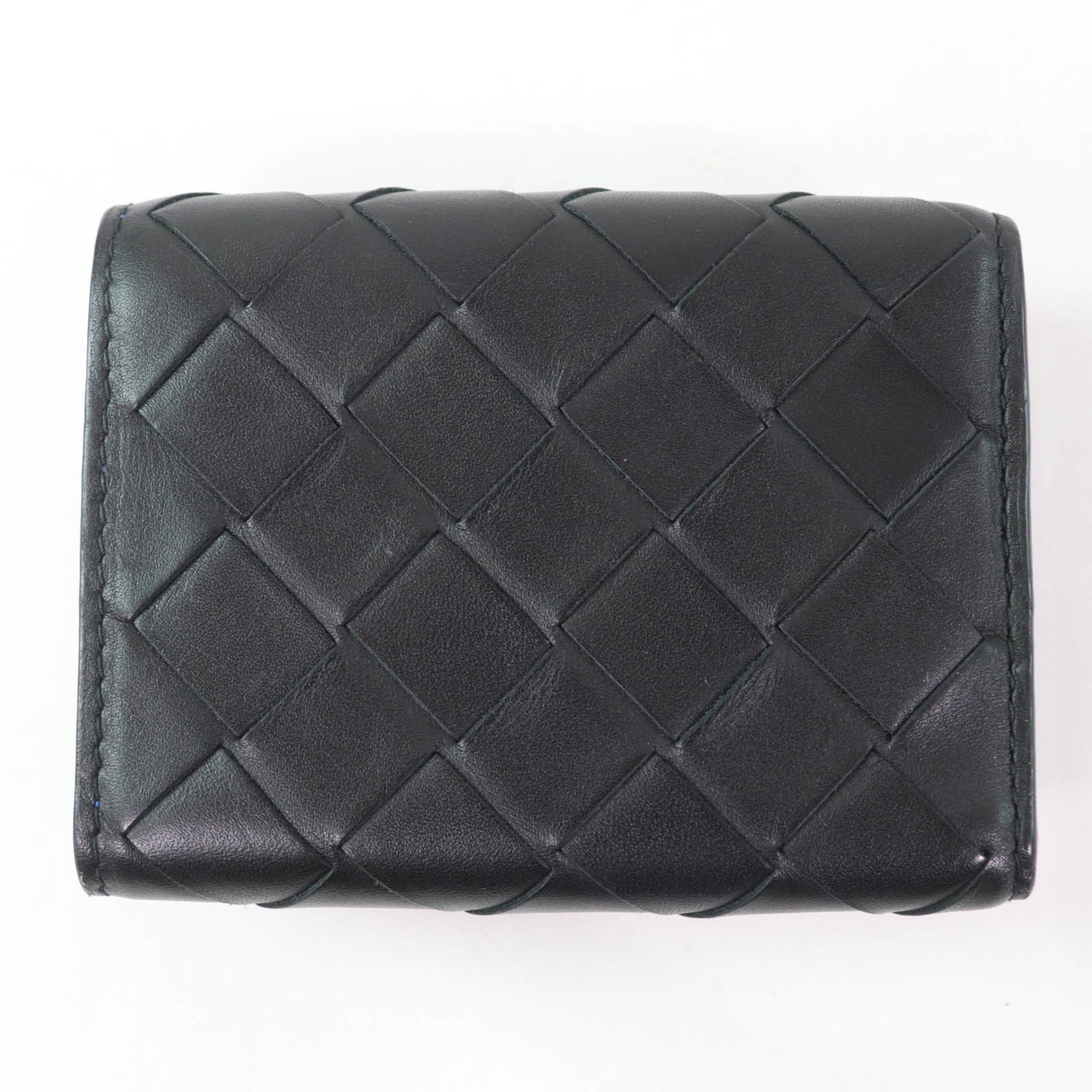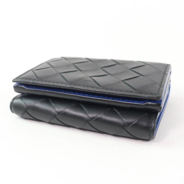 BOTTEGA VENETA Leather Intrecciato Tiny Tri-fold Wallet, Compact Black/Blue, Box and Dust Bag Included, Made in Italy, Women\'s