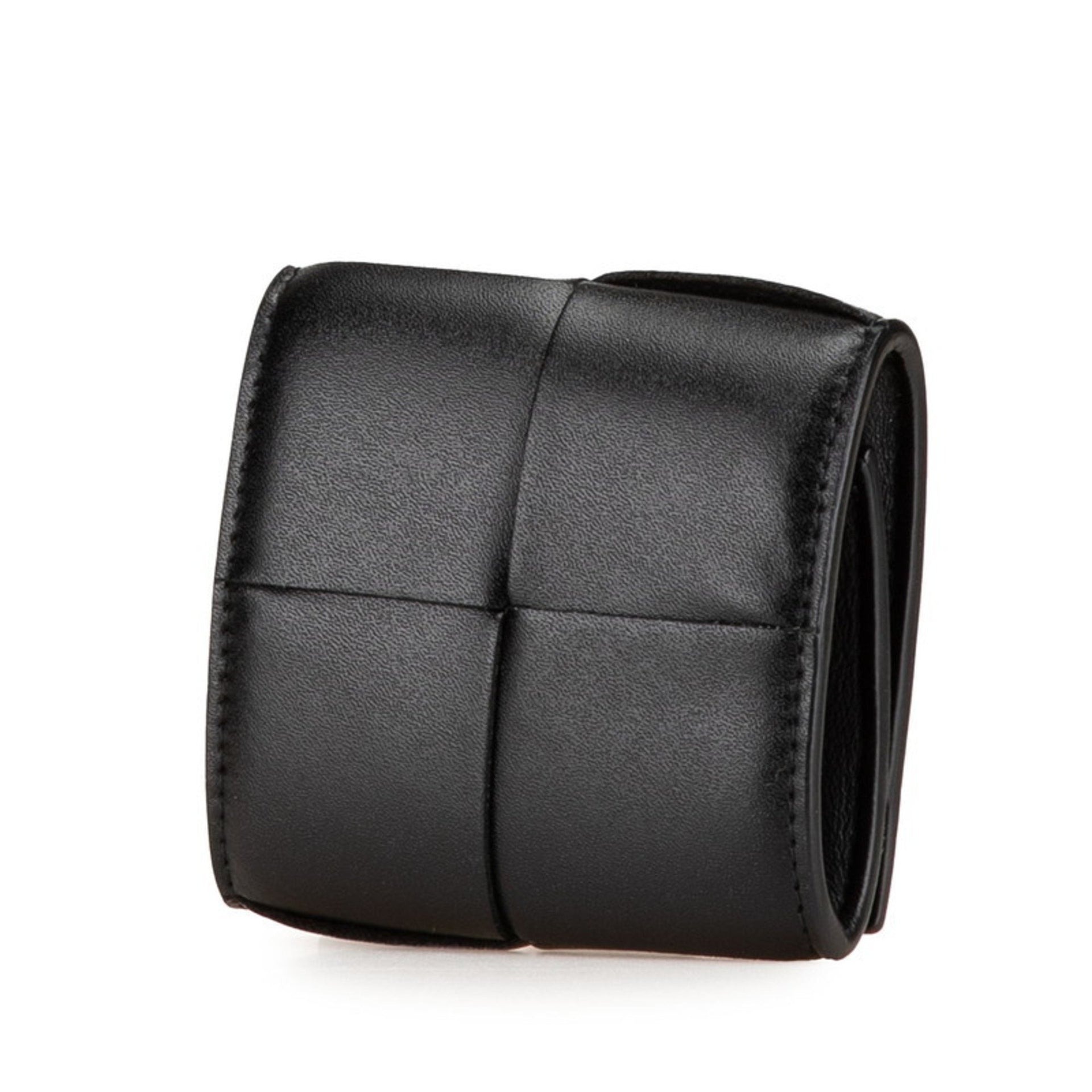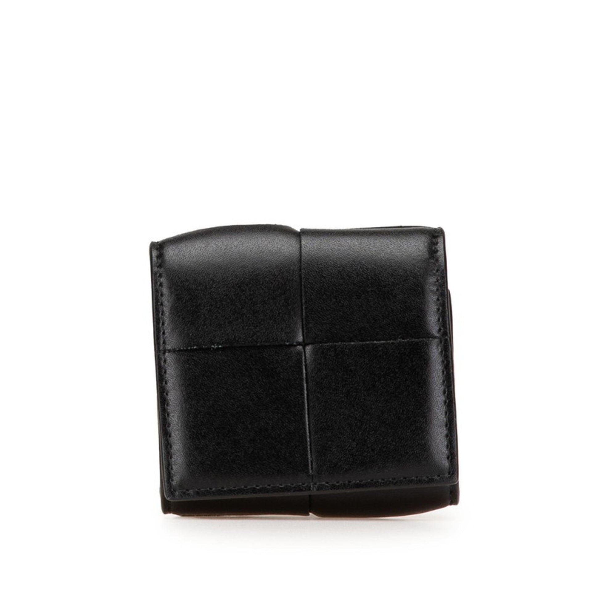 Bottega Veneta Maxi Intrecciato Cassette Folding Coin Purse Case Black Leather Women\'s BOTTEGAVENETA