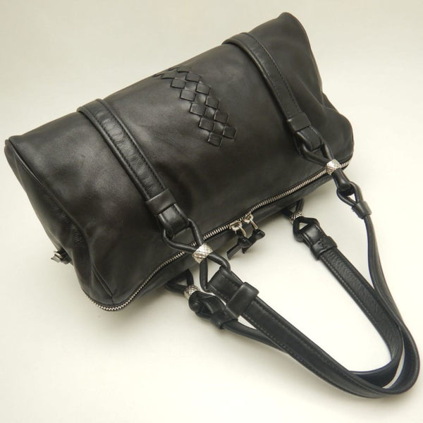 BOTTEGA VENETA Mini Boston Bag, Lambskin, Black, Outlet, 253031