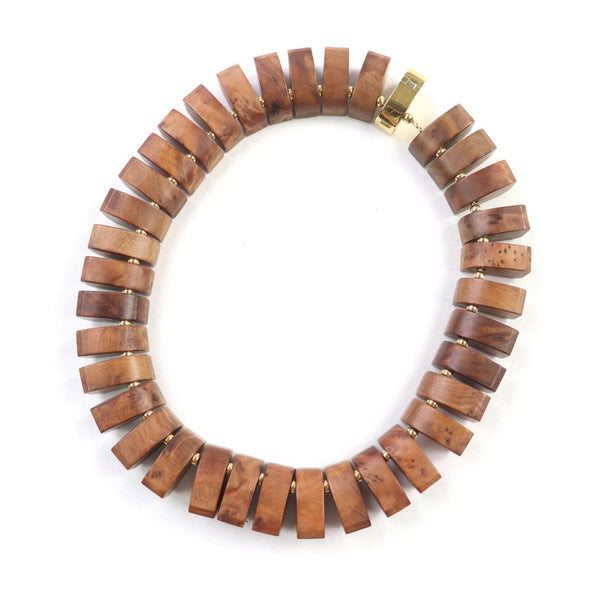 BOTTEGA VENETA Radica Wood and Cubic Zirconia 925 Necklace/Choker, Brown, with Dust Bag, Made in Italy, Weight: 185g, Women\'s