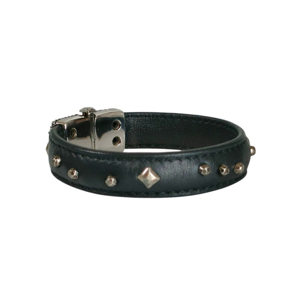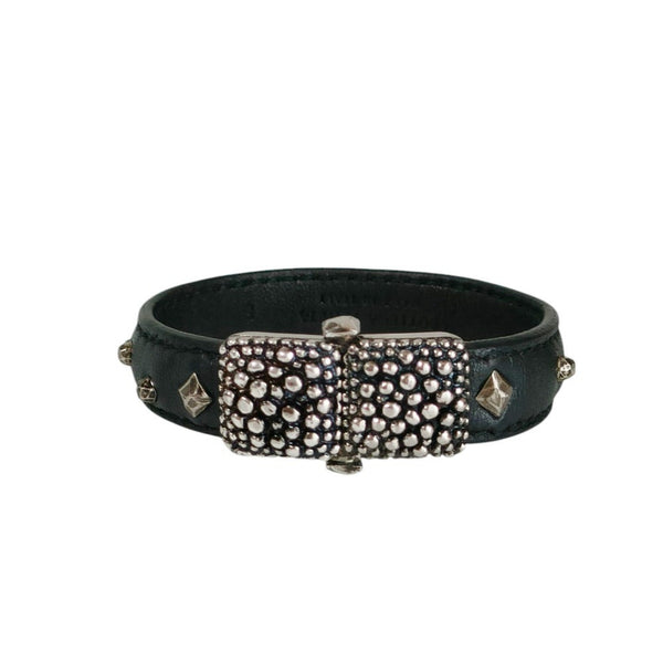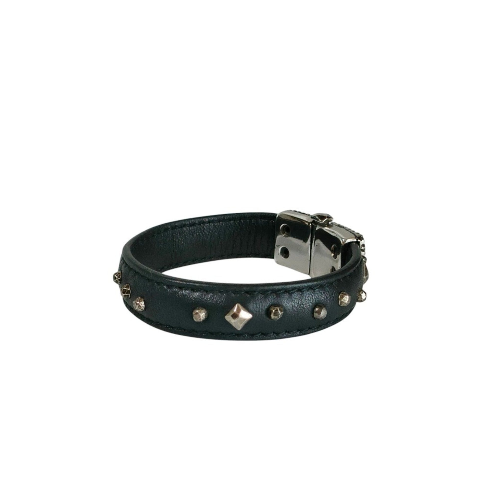 Bottega Veneta Studded Leather Bangle Bracelet, Size Small, Black with Silver Hardware, Women\'s, Luxs, Pre-owned Brands