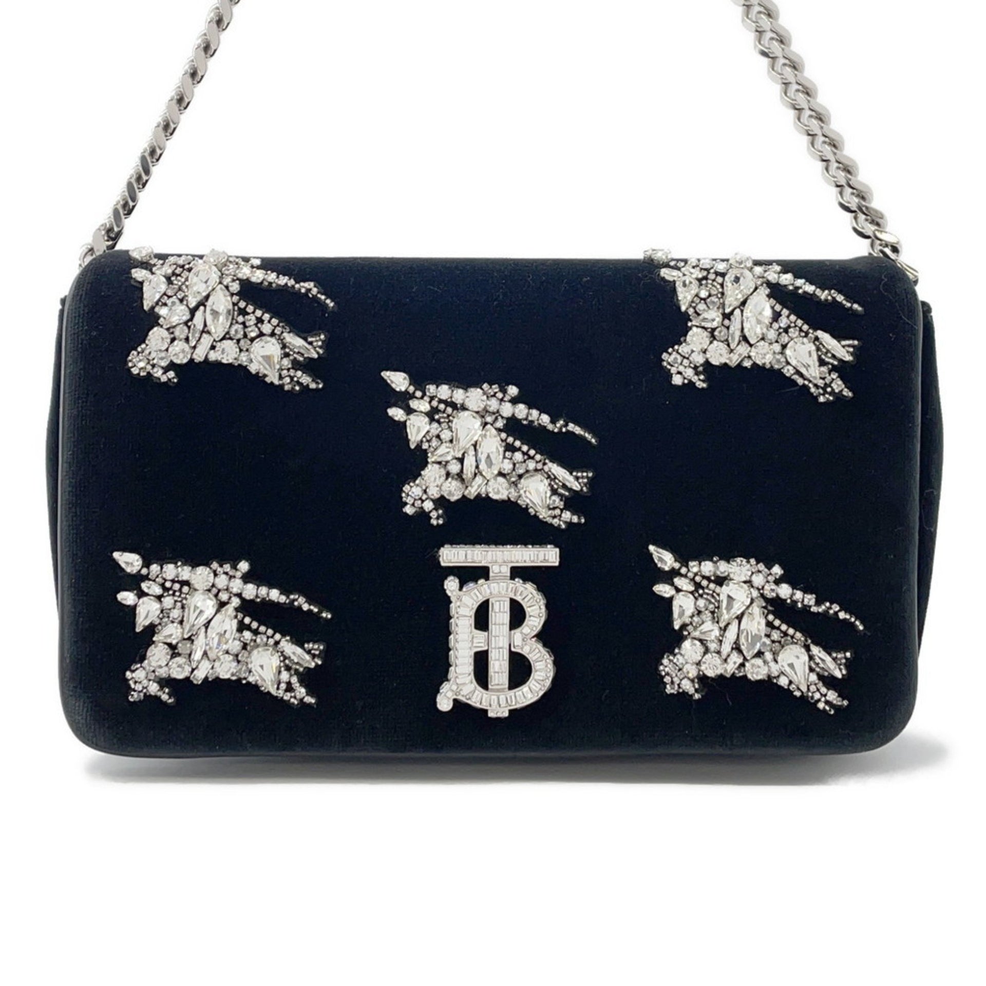 Burberry Chain Shoulder Bag LOLA Lola Velvet Rhinestone Black