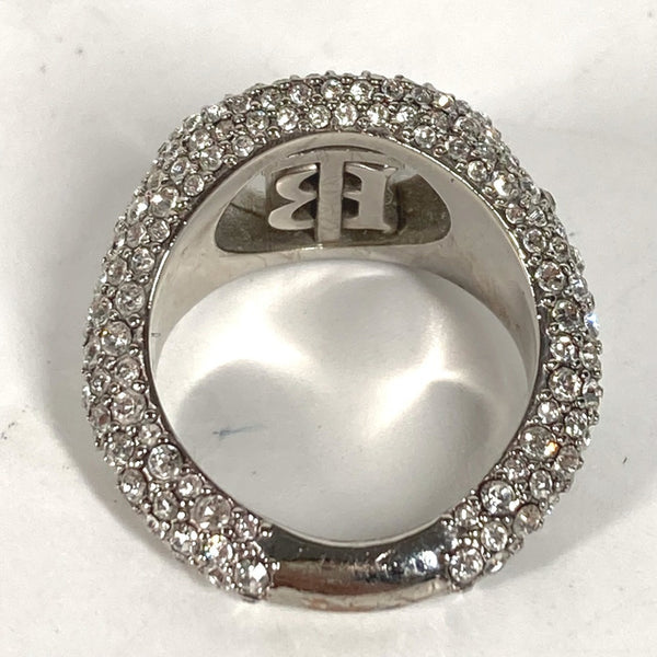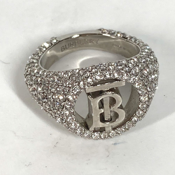 BURBERRY Embellished TB Pavé Signet Ring with Rhinestones, Women\'s, Silver, Size 10.5