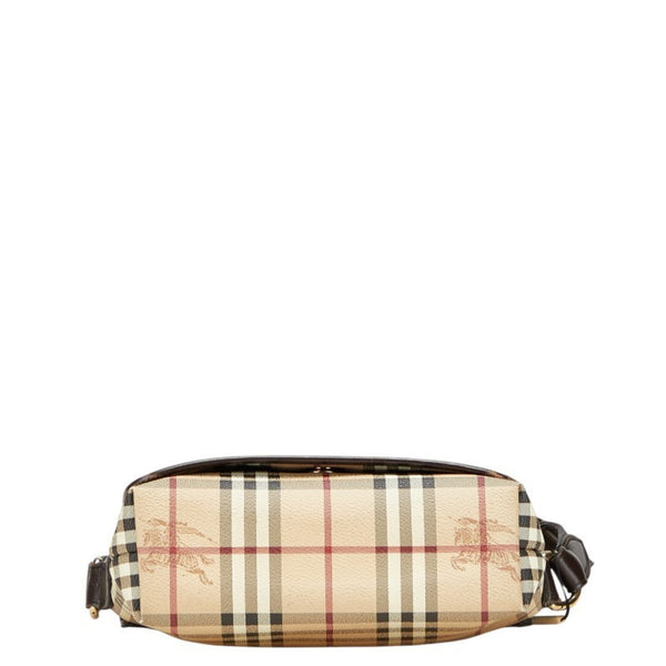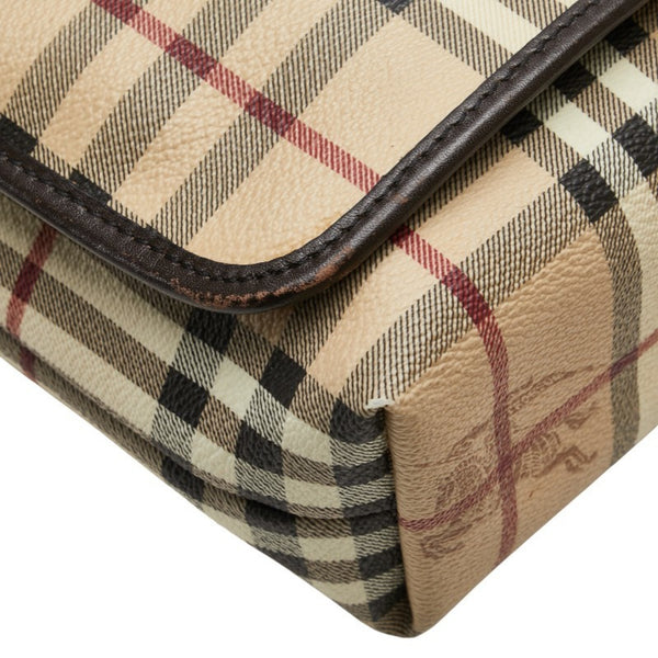 Burberry Haymarket Check Shadow Horse Crossbody Shoulder Bag in Beige and Brown Leather for Women