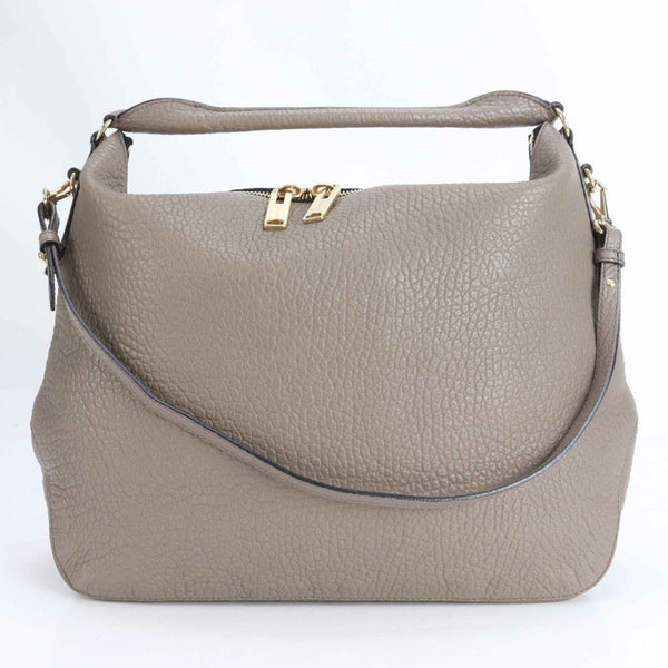 Burberry Hobo Leather 2-Way Shoulder Bag/Tote Bag, Genuine Leather, Gray, Women's