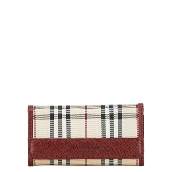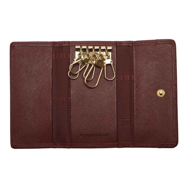 Burberry Nova Check 5-Ring Key Case in Beige and Wine Red Nylon Leather for Women