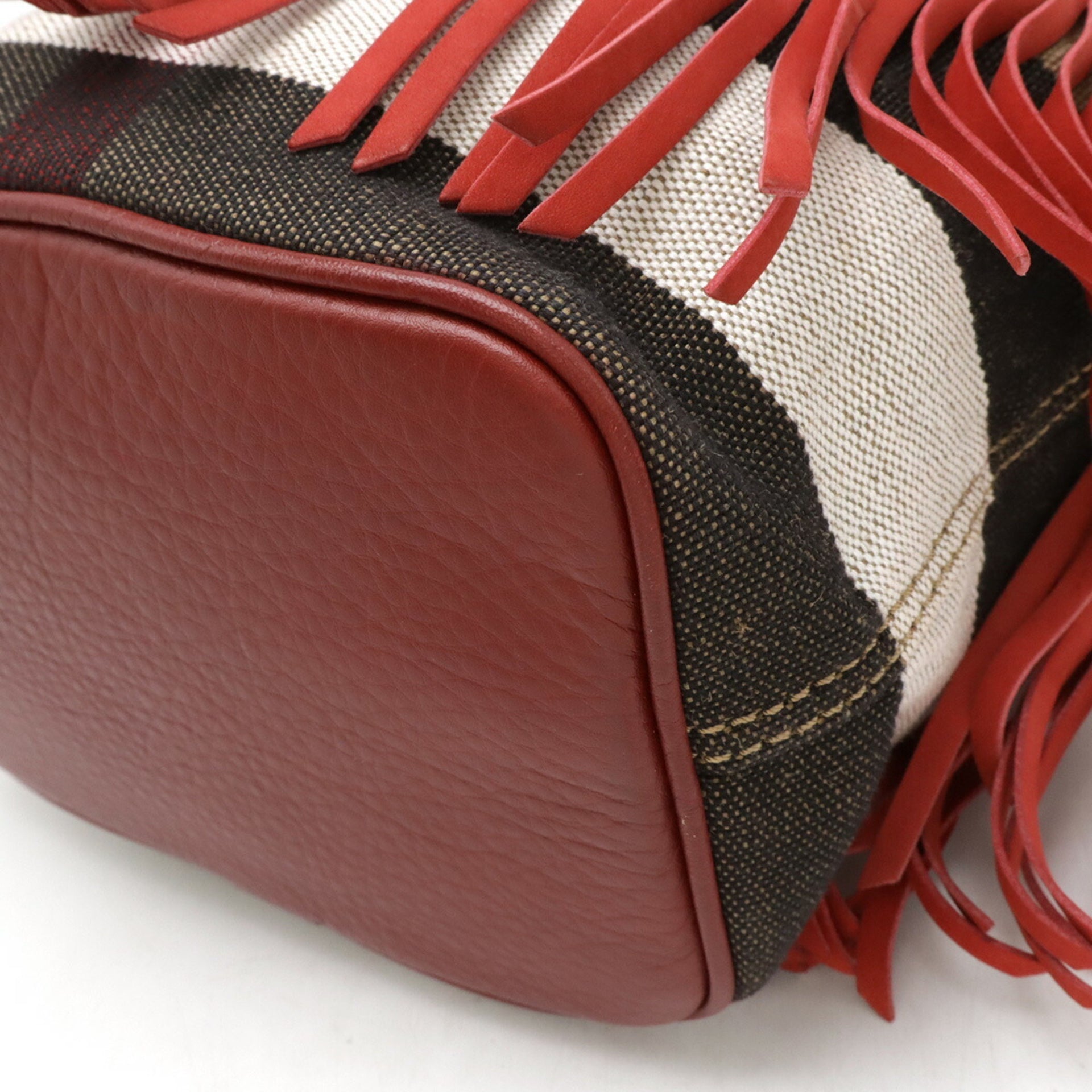 BURBERRY Nova Check Pattern Shoulder Bag Suede Canvas Leather Red Brown