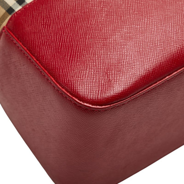 Burberry Nova Check Shadow Horse Handbag, One-Shoulder Bag, Beige and Red Canvas Leather, Women\'s, BURBERRY