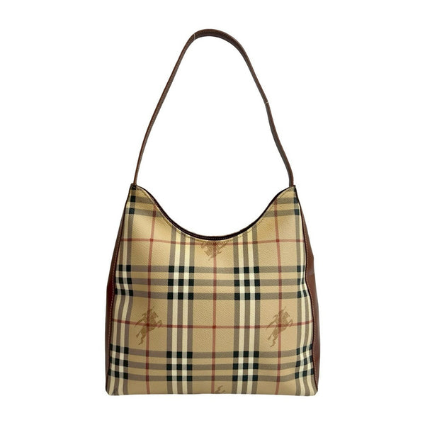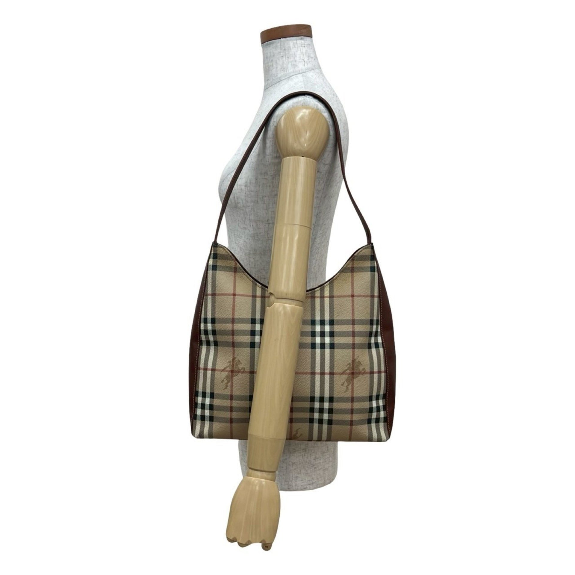 BURBERRY Nova Check Shadow Horse Leather Semi-Shoulder Tote Bag, Brown, 75756