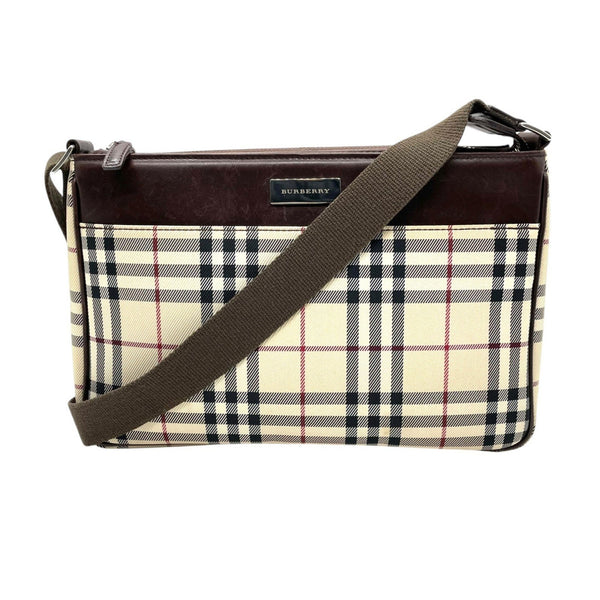 Burberry Nova Check Shoulder Bag in Beige and Brown Canvas Leather (K3)