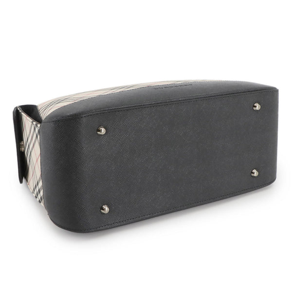 Burberry Nova Check Shoulder Bag in Canvas and Leather with Beige, Black, Silver Hardware