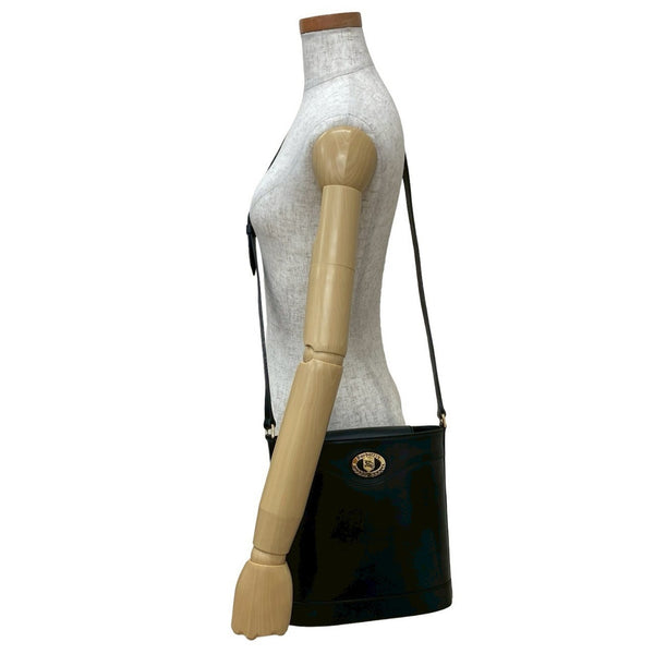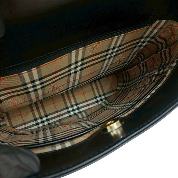 Burberry\'s Vintage Shadow Horse Logo Hardware Nova Check Leather Shoulder Bag in Black (89853)