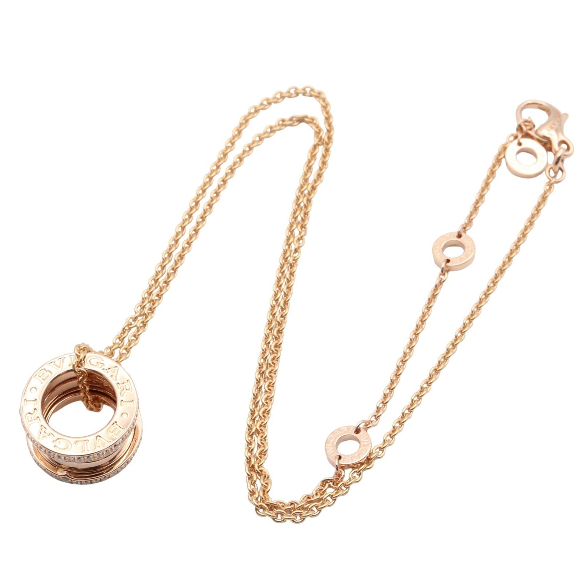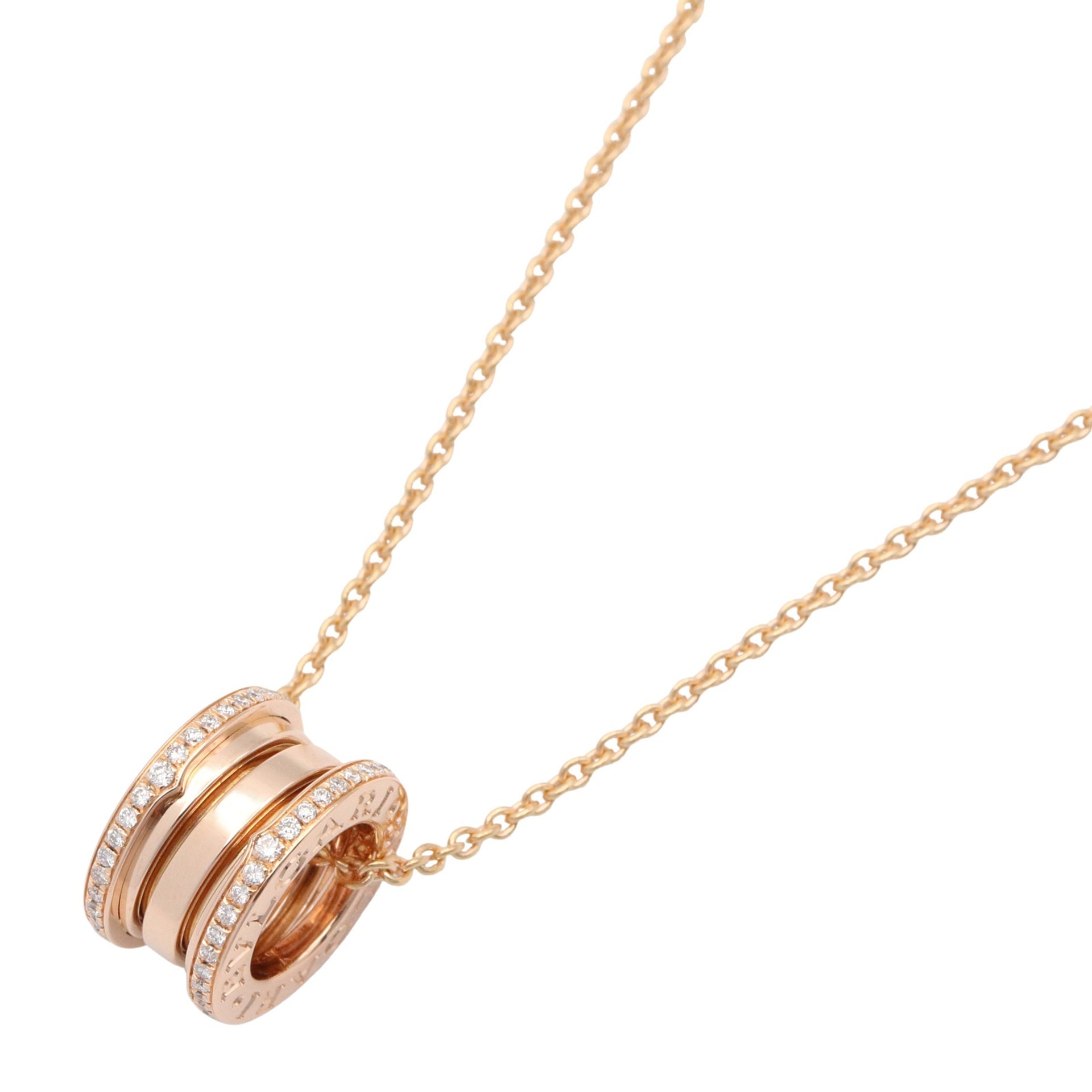 BVLGARI B-zero1 Diamond Necklace, 18K Pink Gold (K18PG) with Clear Diamonds, Women\'s